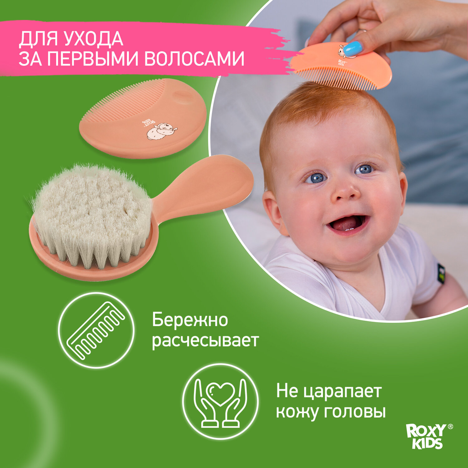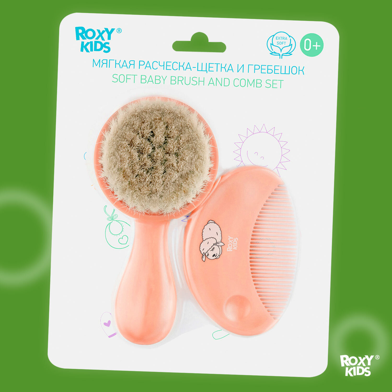 СохранитьМягкая расческа-щетка и гребешок от ROXY KIDS. Ворс из овечьей шерсти , цвет персиковый интересное: