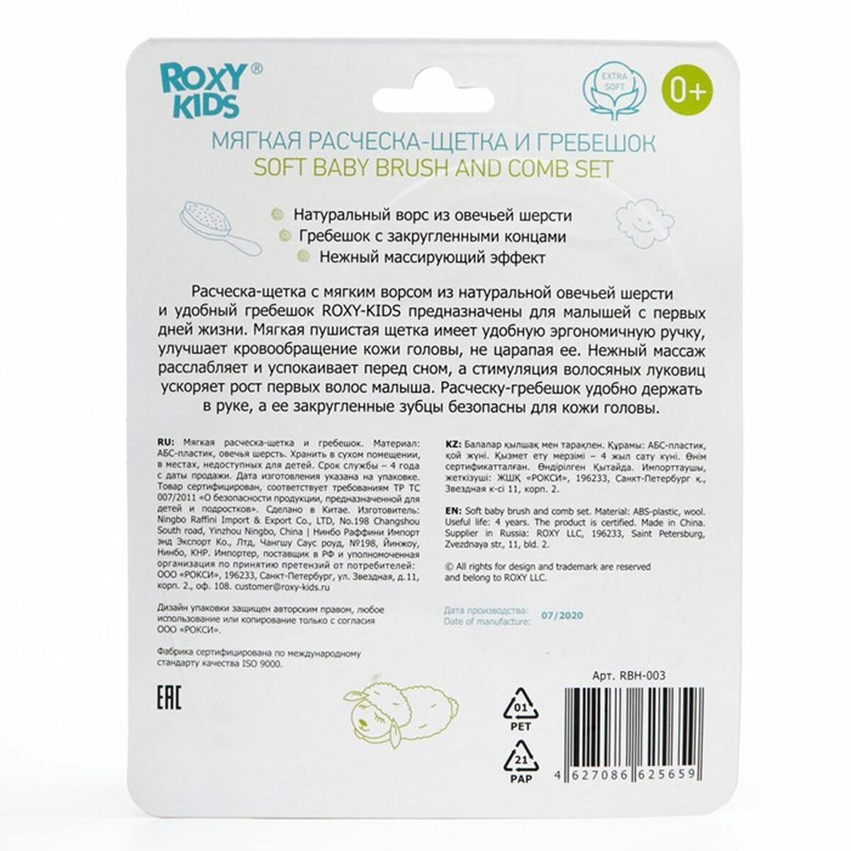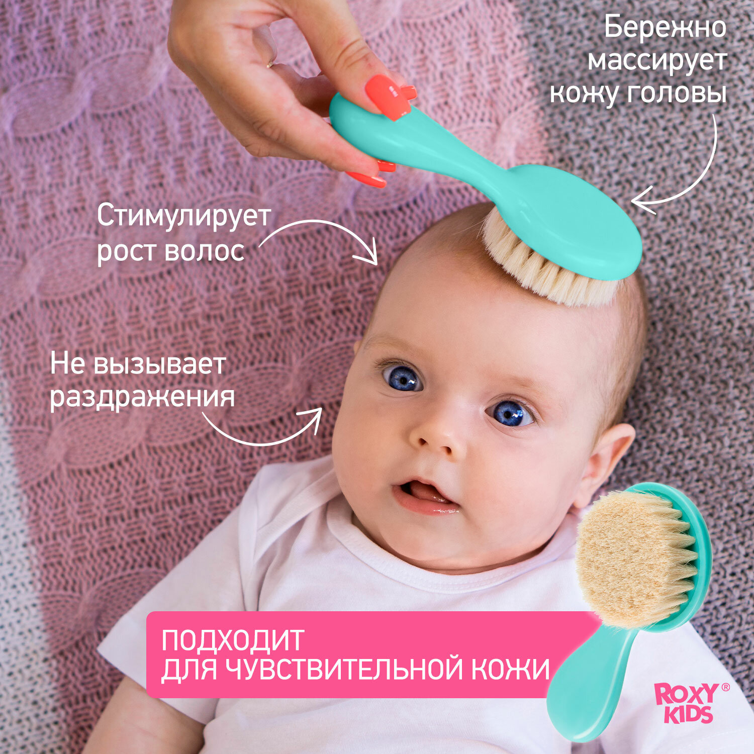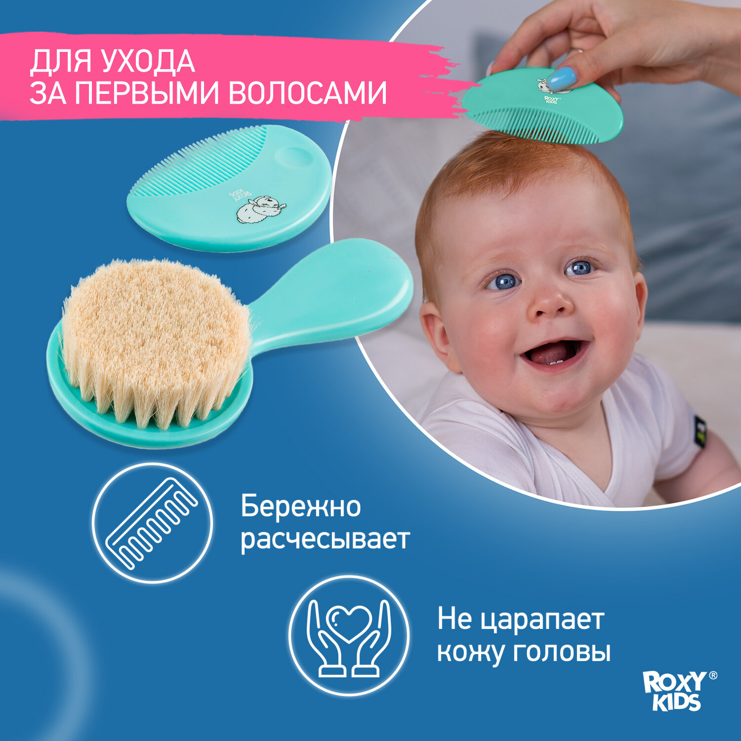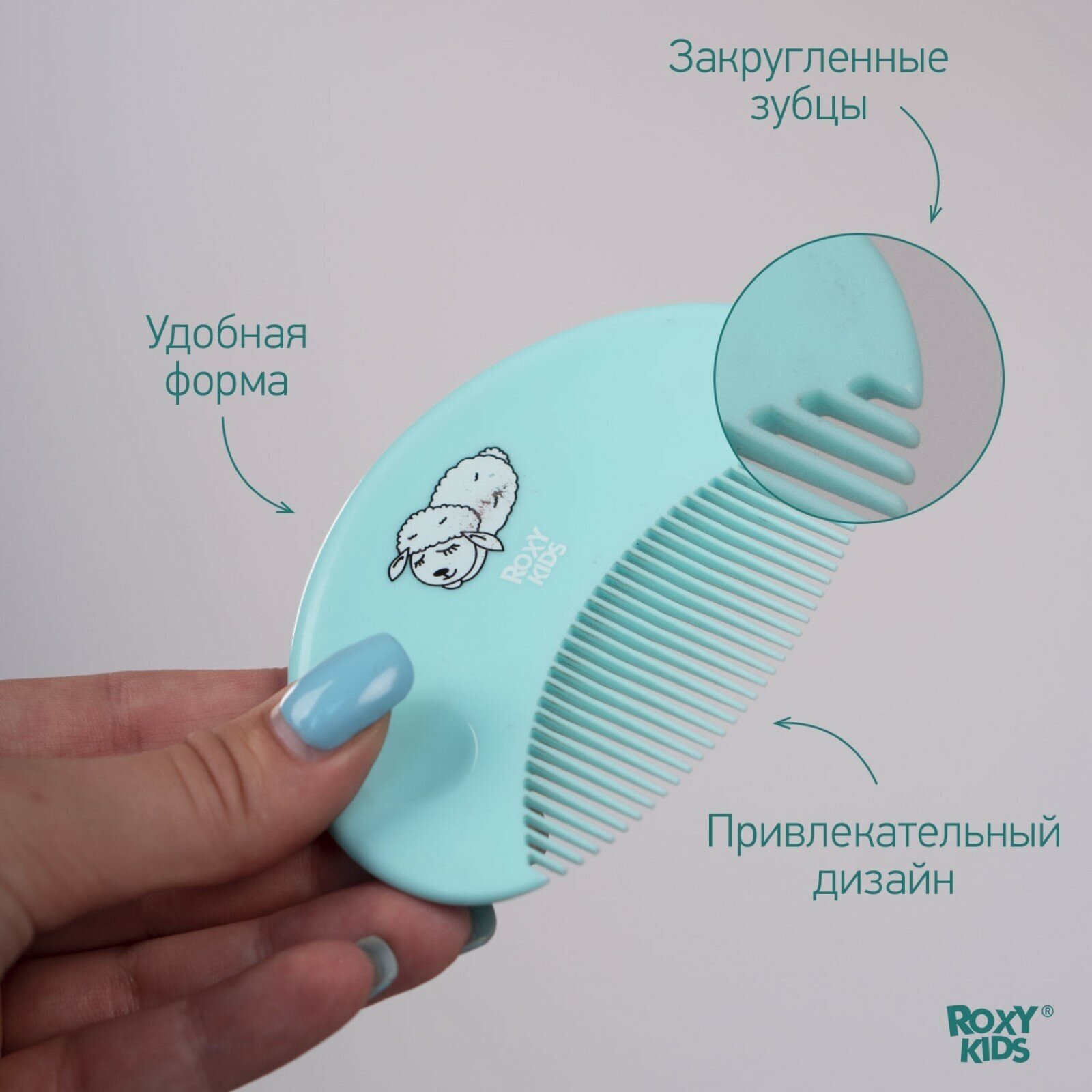 СохранитьМягкая расческа-щетка и гребешок от ROXY RIDS. Ворс из овечьей шерсти. Цвет бирюзовый. интересное: