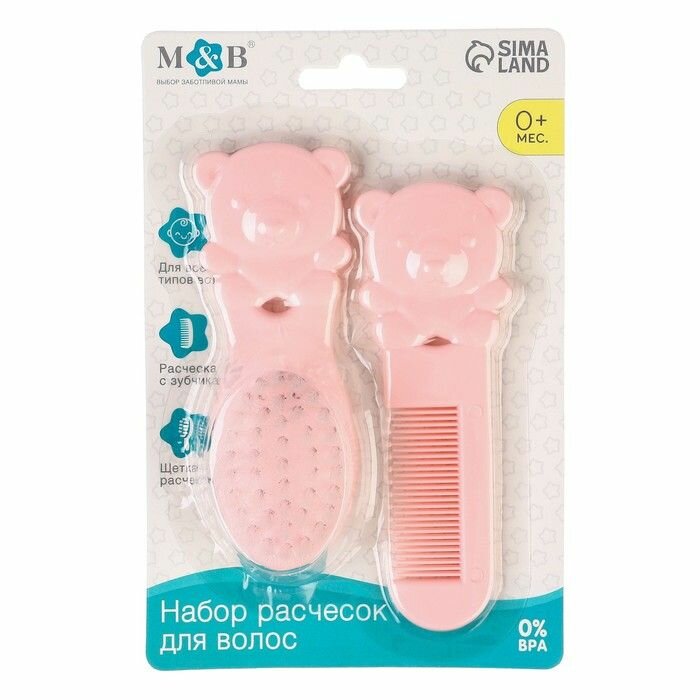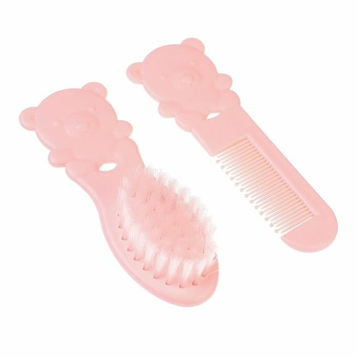 Набор детских расчесок "Мишка" из 2 штук для волос, детская массажная щётка и расческа-гребешок для новорожденных и малышей, цвет розовый интересное: