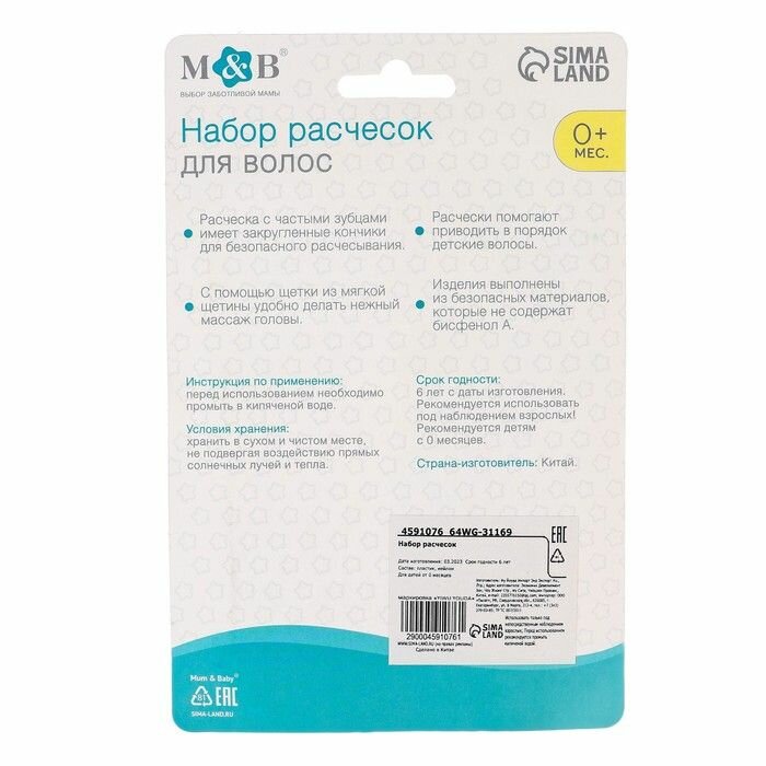 Расчёска детская + массажная щётка для волос, от 0 мес, цвета микс, 2315247