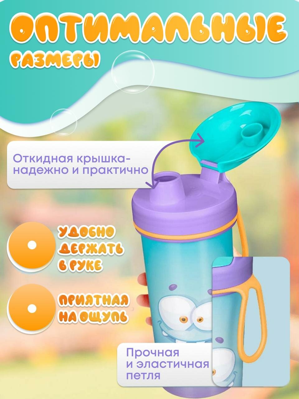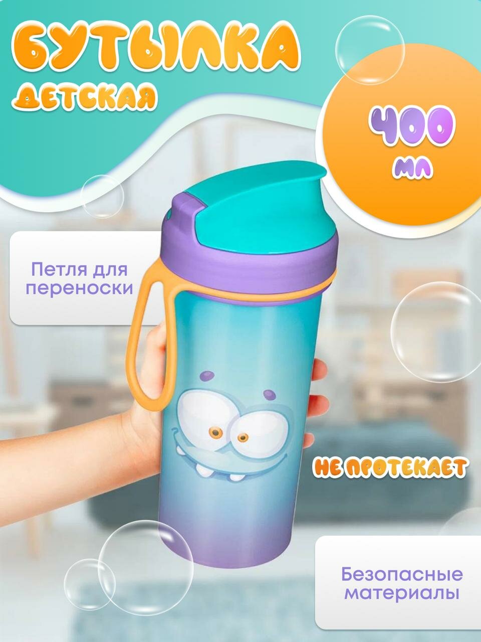 Бутылка детская с декором и петлёй 400 мл. (Голубой) интересное: