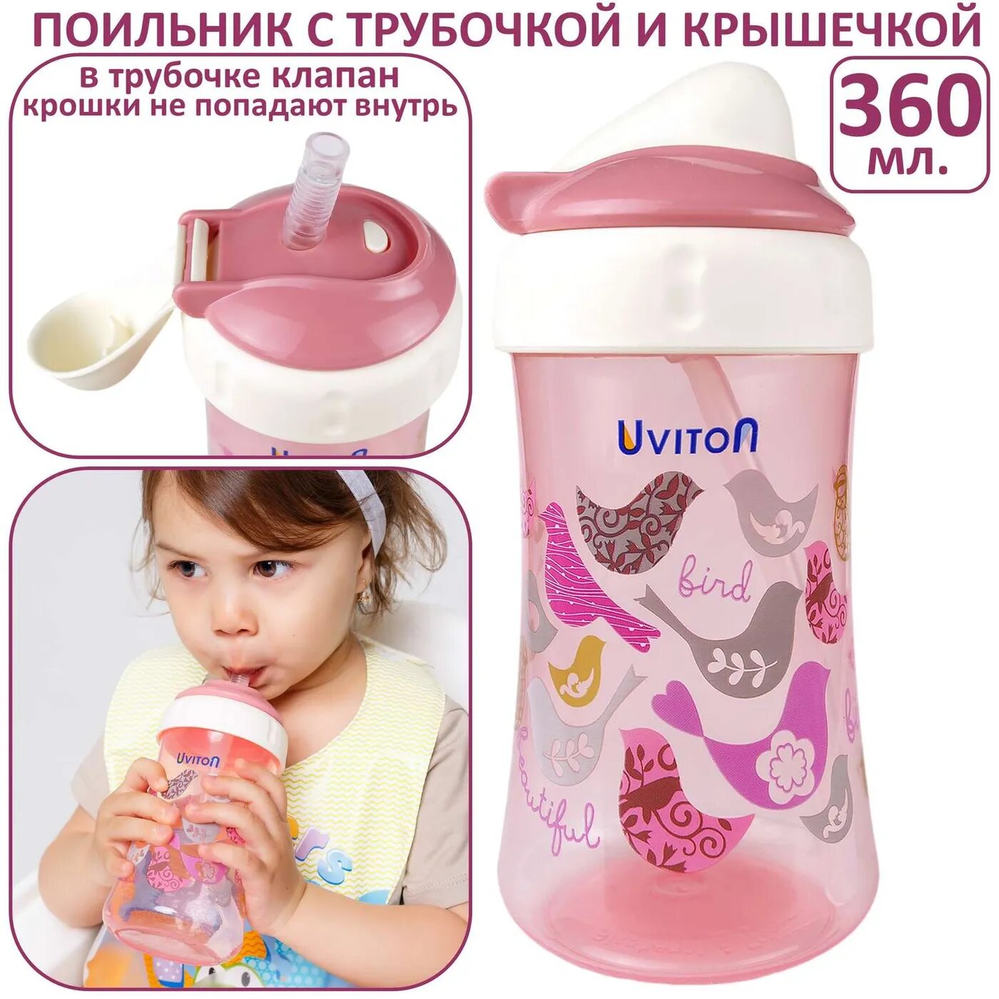 Поильник с трубочкой, непроливайка 360мл. интересное: