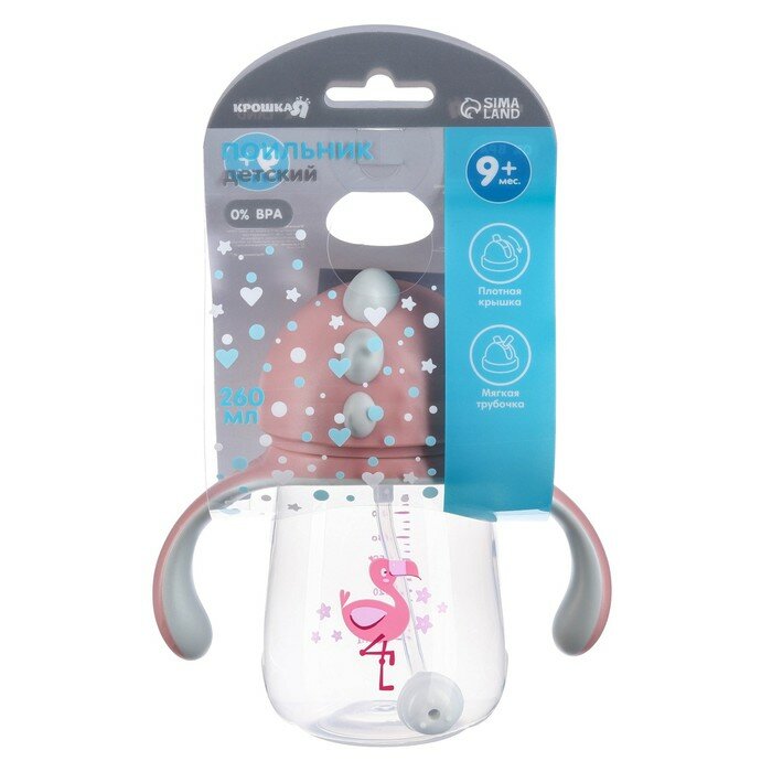 Купить Поильник - непроливайка детский с силиконовой трубочкой «Фламинго», 260 мл., с ручками, цвет розовый