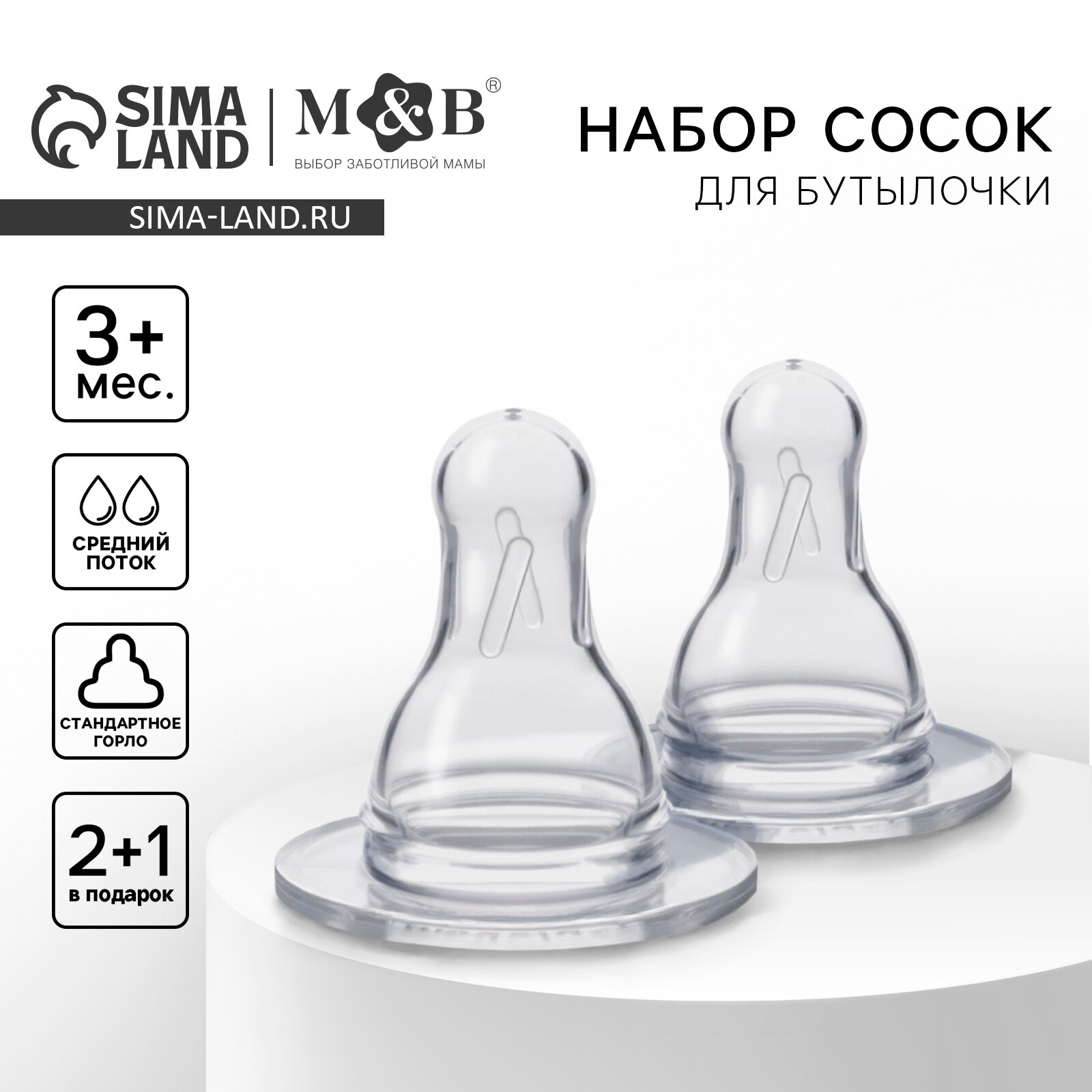 Купить Набор сосок для бутылочки +3мес., классическое горло 35мм, 2 шт + 1 шт в подарок