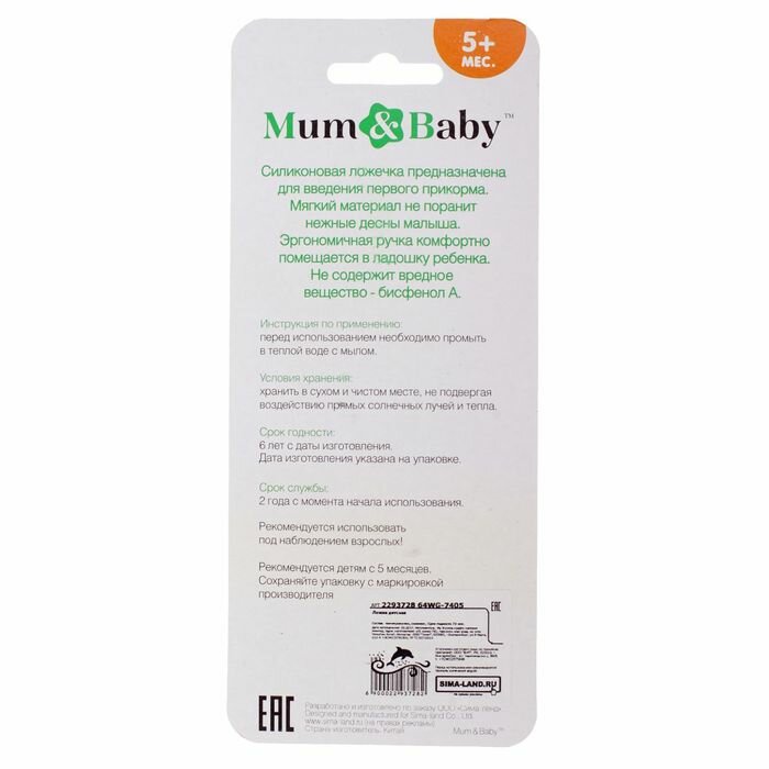 Купить Ложка детская для кормления силиконовая, от 5 мес., цвет фиолетовый
