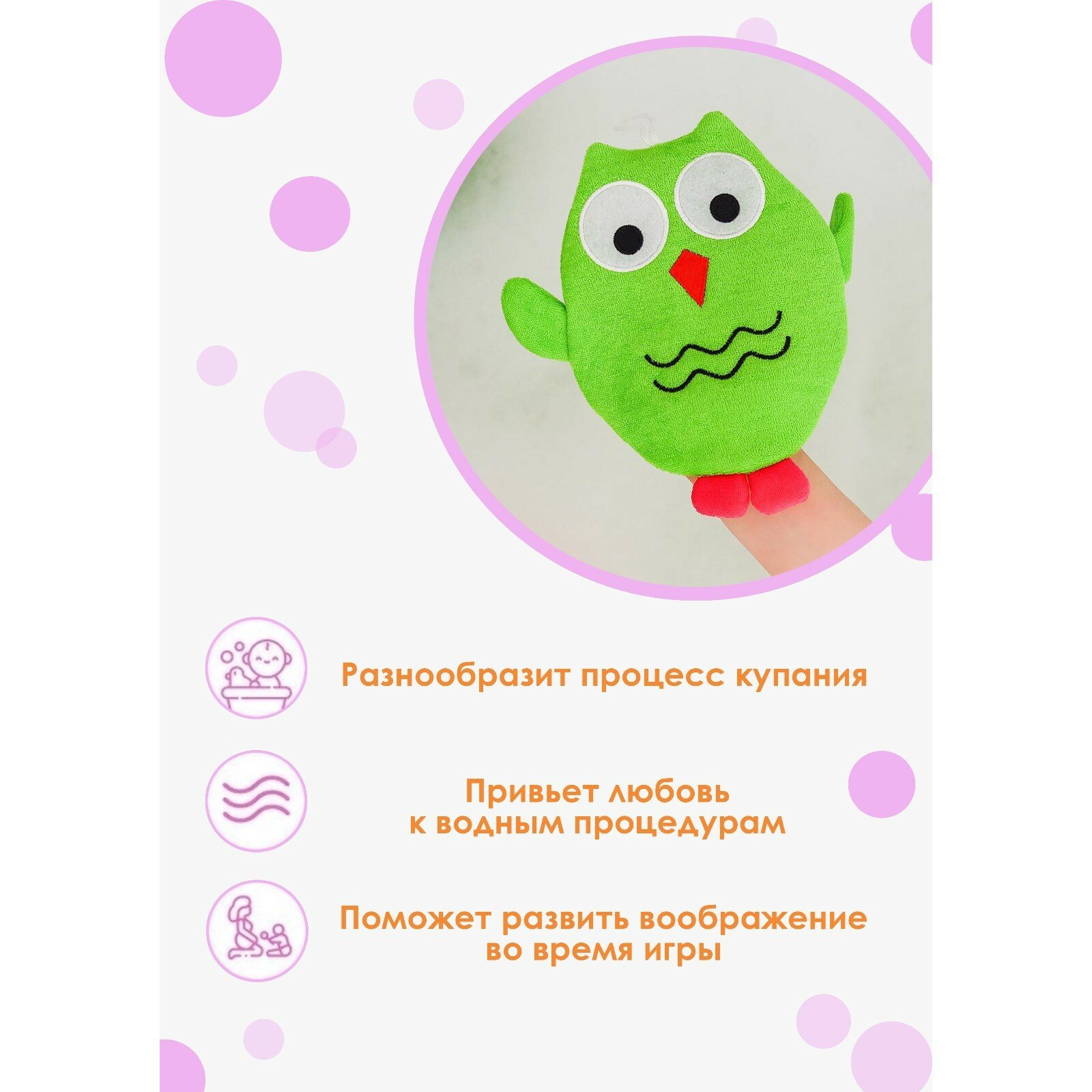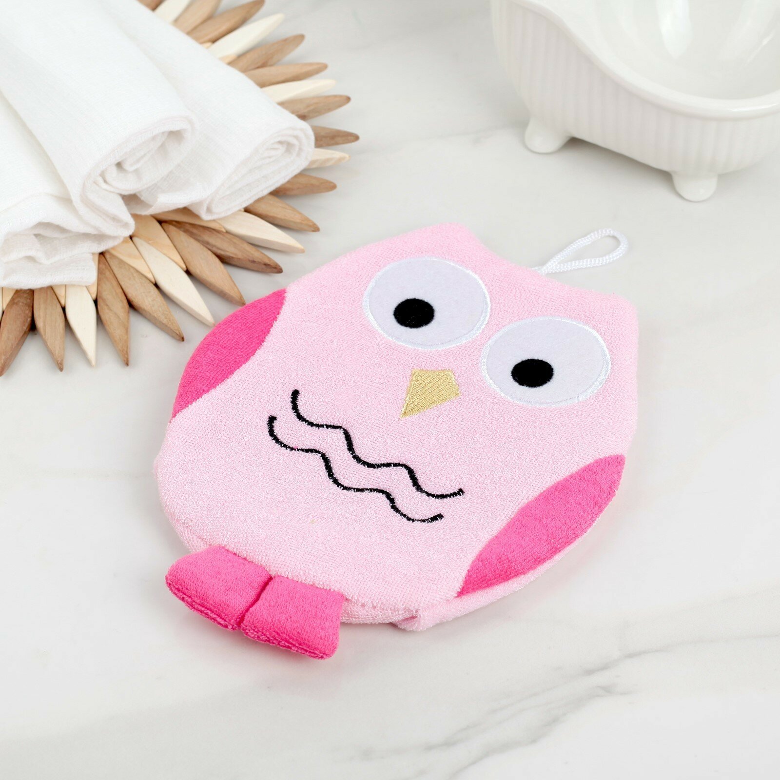 Мочалка-варежка детская для купания Доляна «Совушка», цвет микс интересное: