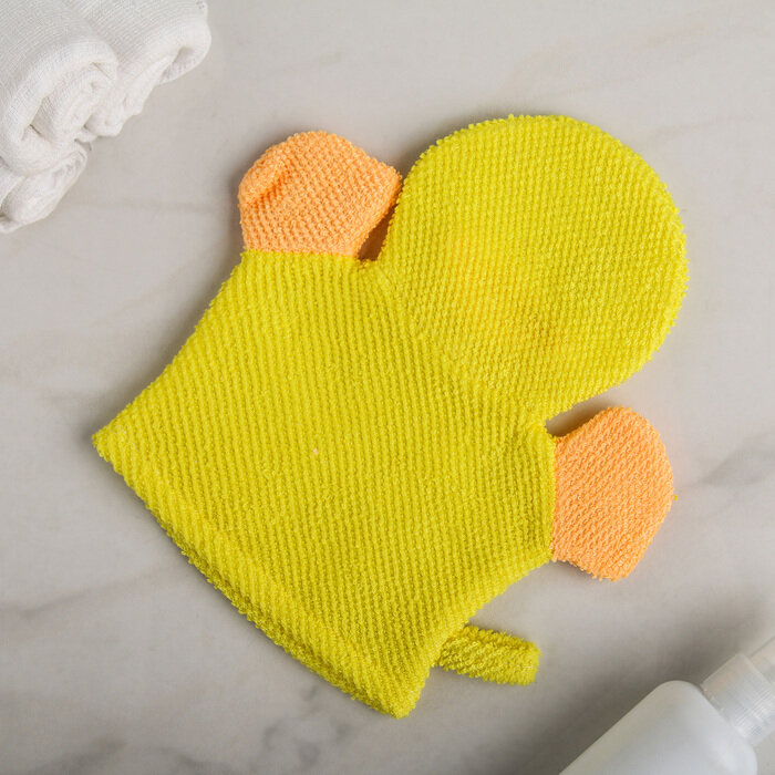 Мочалка-варежка детская для купания Доляна «Уточка», 21 см (1шт.)