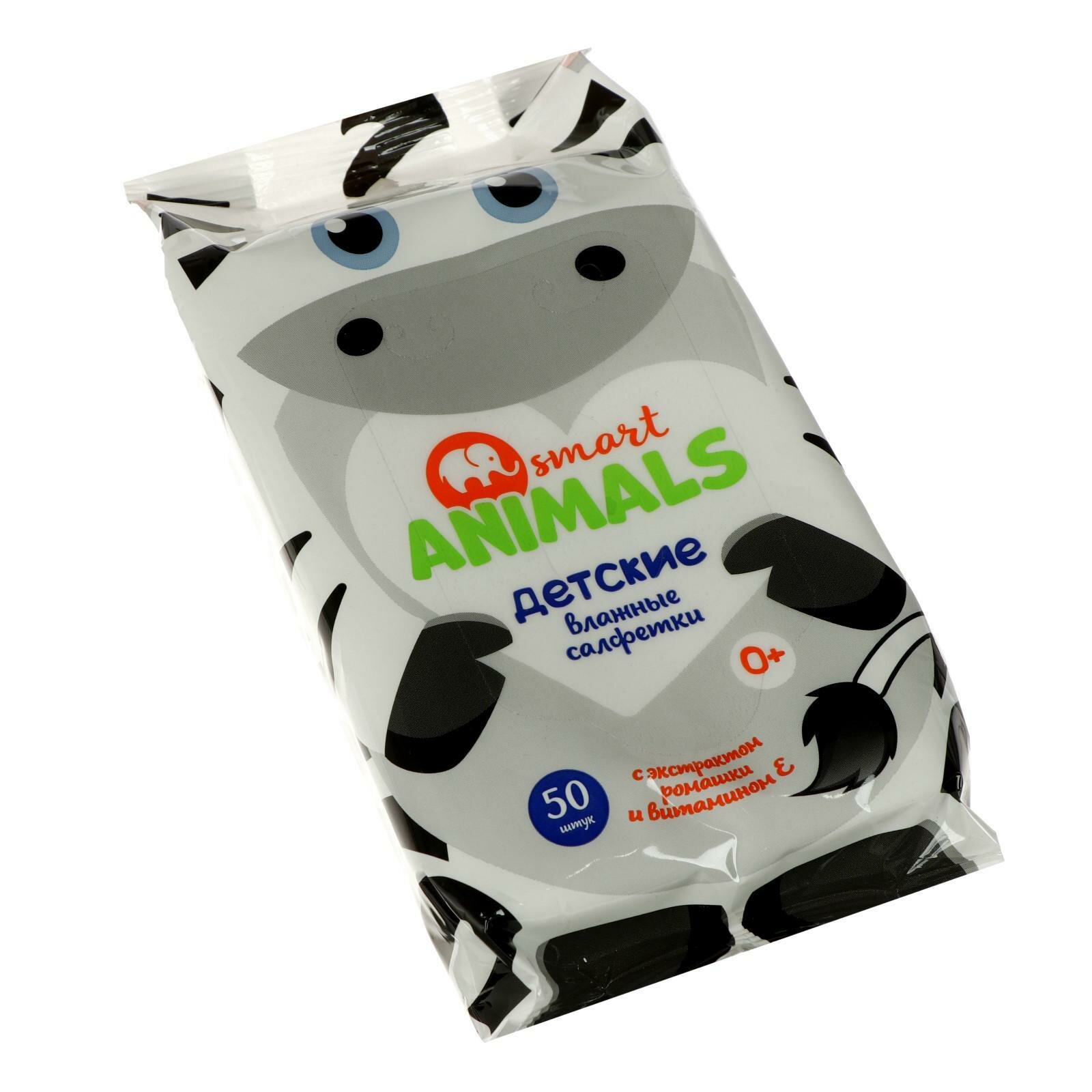 Влажные салфетки Smart animals №50 детские с ромашкой и витамином Е mix интересное: