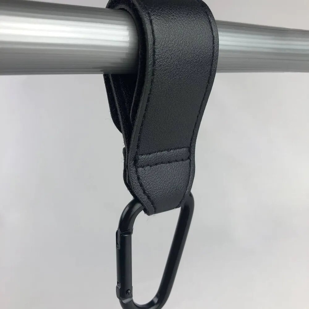 Купить Карабин с креплением для коляски / крючок - вешалка на липучке для сумок , пакетов универсальный/черный