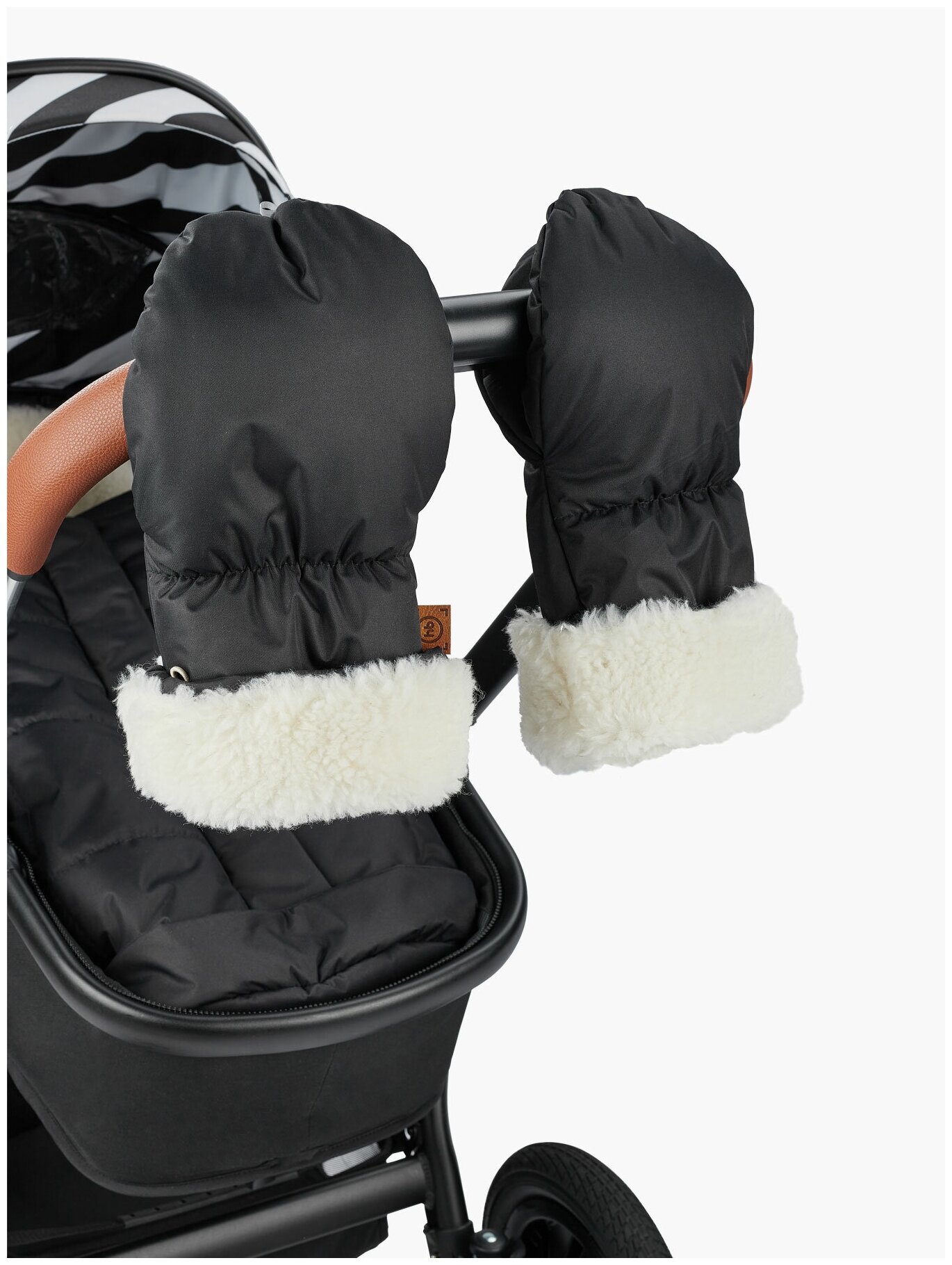 Купить 89022, Муфты-варежки на коляску Happy Baby, водонепроницаемые, с шерстью, черные