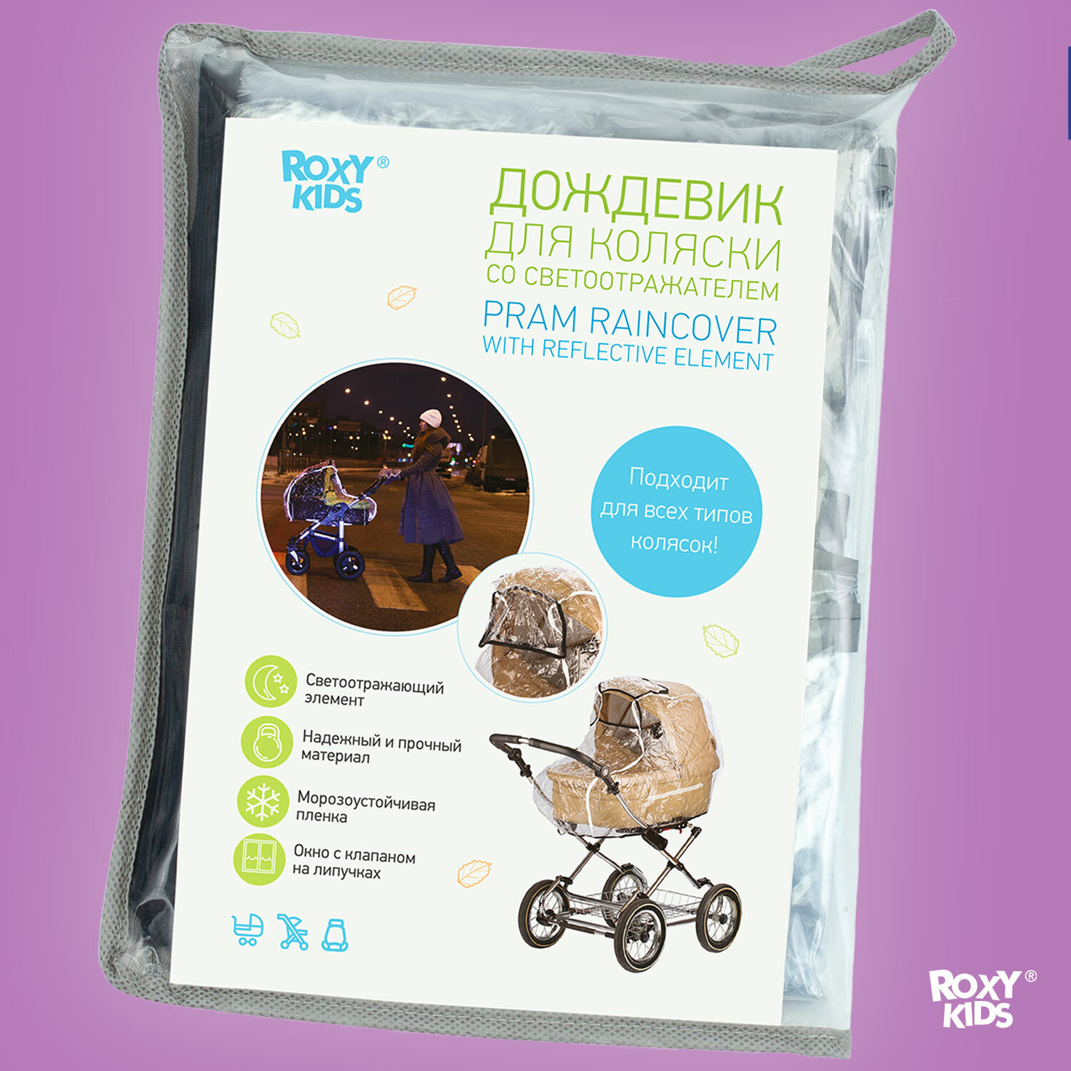 Дождевик на коляску универсальный со светоотражателем в сумке. интересное: