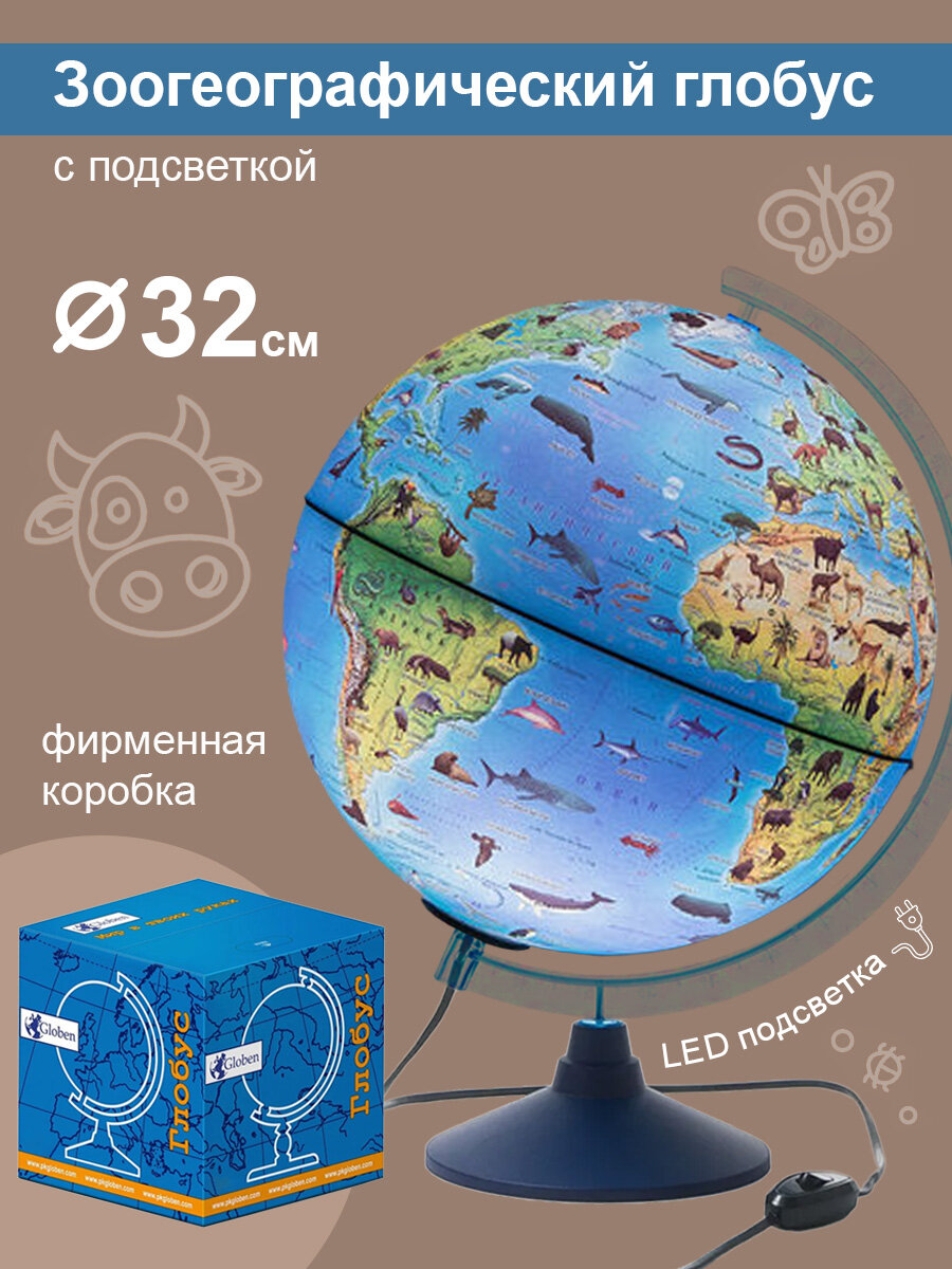 Globen Глобус Зоогеографический (Детский) с LED-подсветкой, диаметр 32 см. интересное: