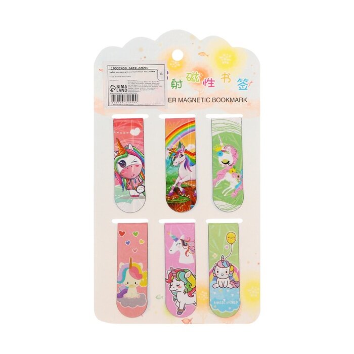 Купить Набор закладок магнитных для книг 6 штук Пони 60*19мм микс CALLIGRATA