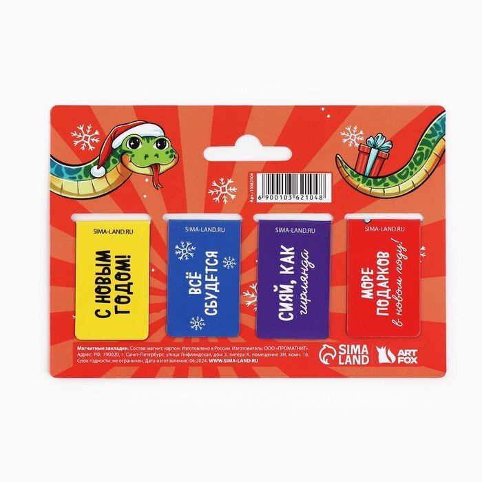 Новый год. Магнитные закладки «Тепла в Новом году! Символ года», 4 шт мини интересное: