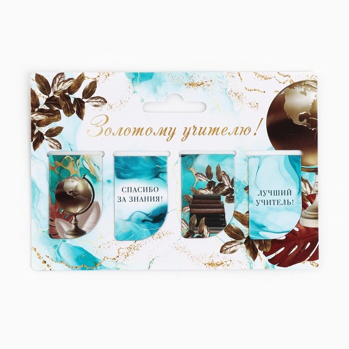 Набор магнитных закладок 4 штуки на подложке «Золотому учителю!» интересное: