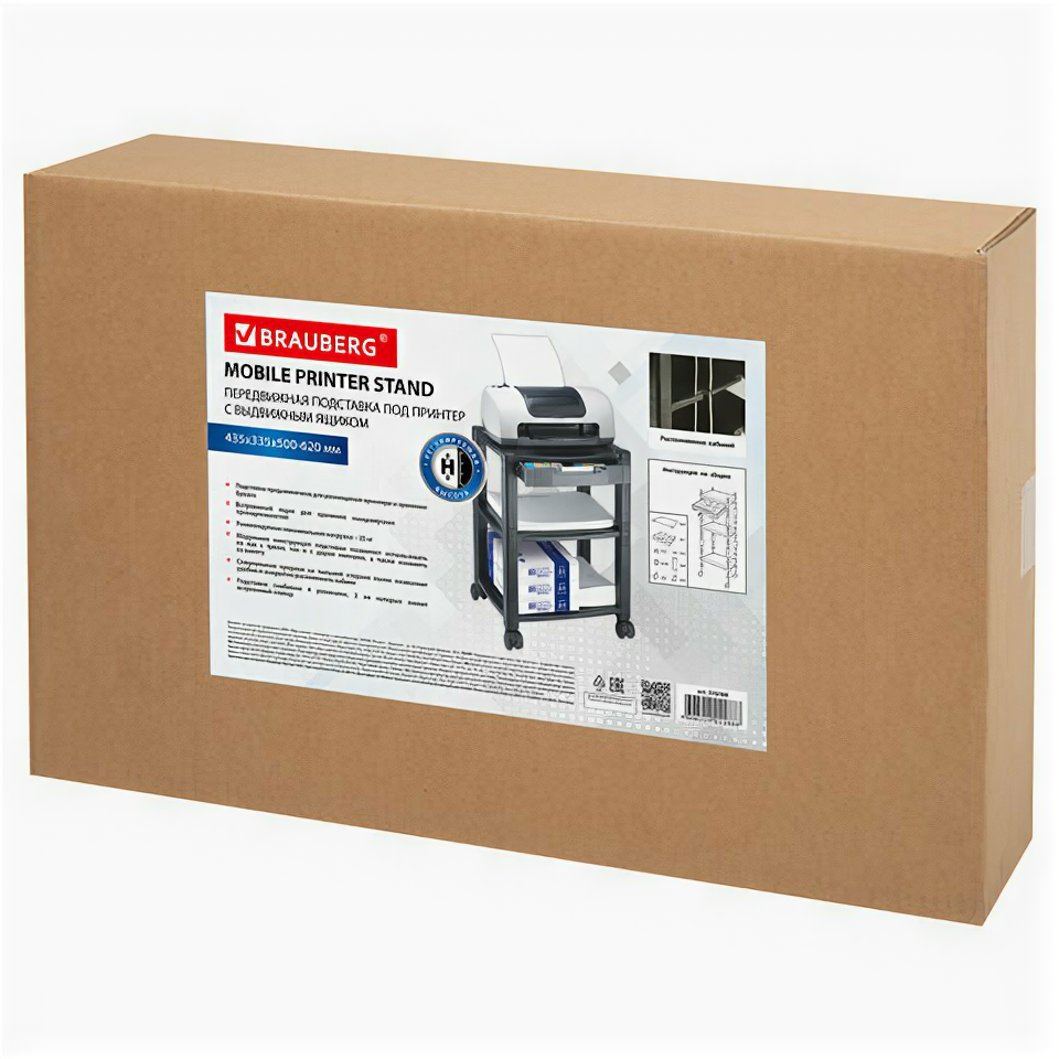 Подставка для принтера BRAUBERG передвижная, с 3 полками и 1 ящиком, 500x435х335 мм, 510188 интересное:
