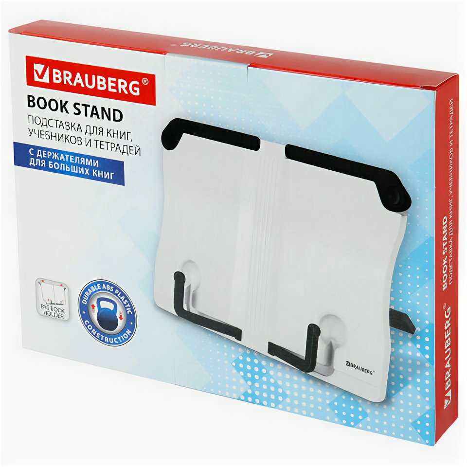 Купить Подставка для книг и учебников BRAUBERG White регулируемый угол наклона прочный ABS-пластик, 1 шт