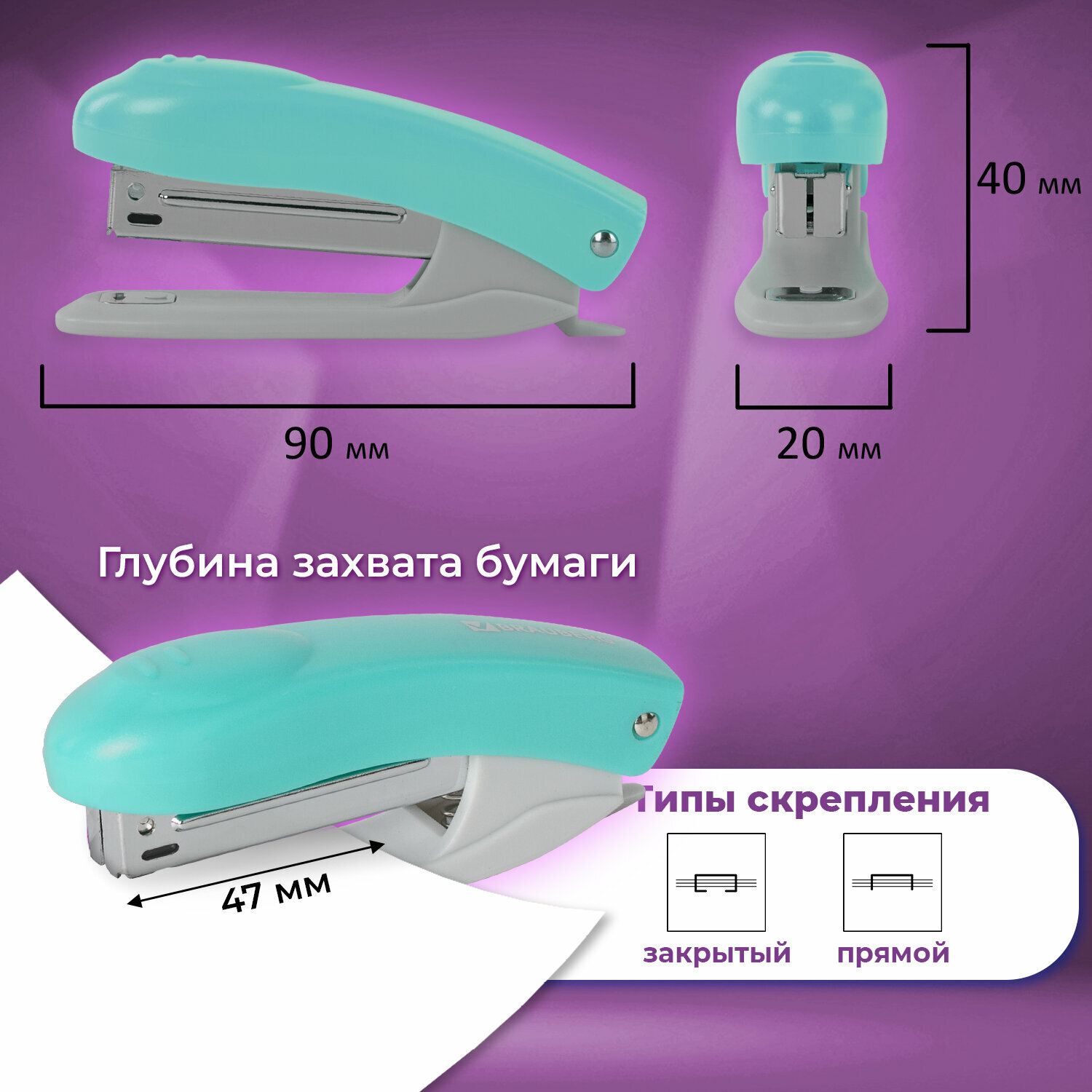 Купить Степлер канцелярский для бумаги №10, до 12 листов, антистеплер, бирюзовый, Brauberg Original, 227765