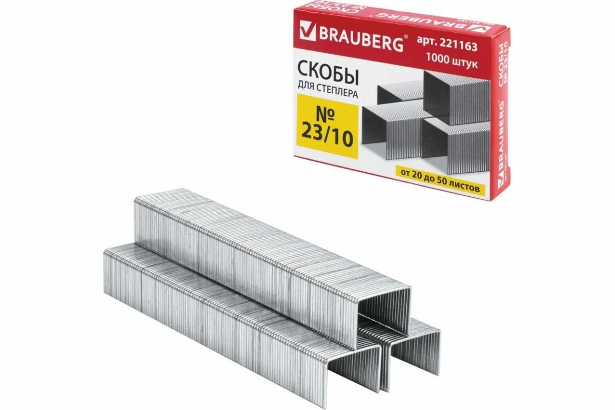Скобы для степлера №23/10, 1000 штук, BRAUBERG, от 20 до 50 листов, 221163 - 3 уп. интересное:
