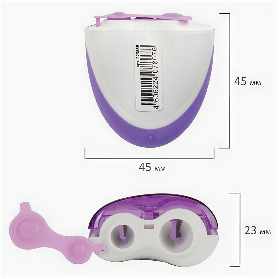 Точилка BRAUBERG "Space", 2 отверстия для чернографитных карандашей (в том числе утолщенных), резиновый упор, с контейнером, ассорти, 223589, 2 штуки интересное: