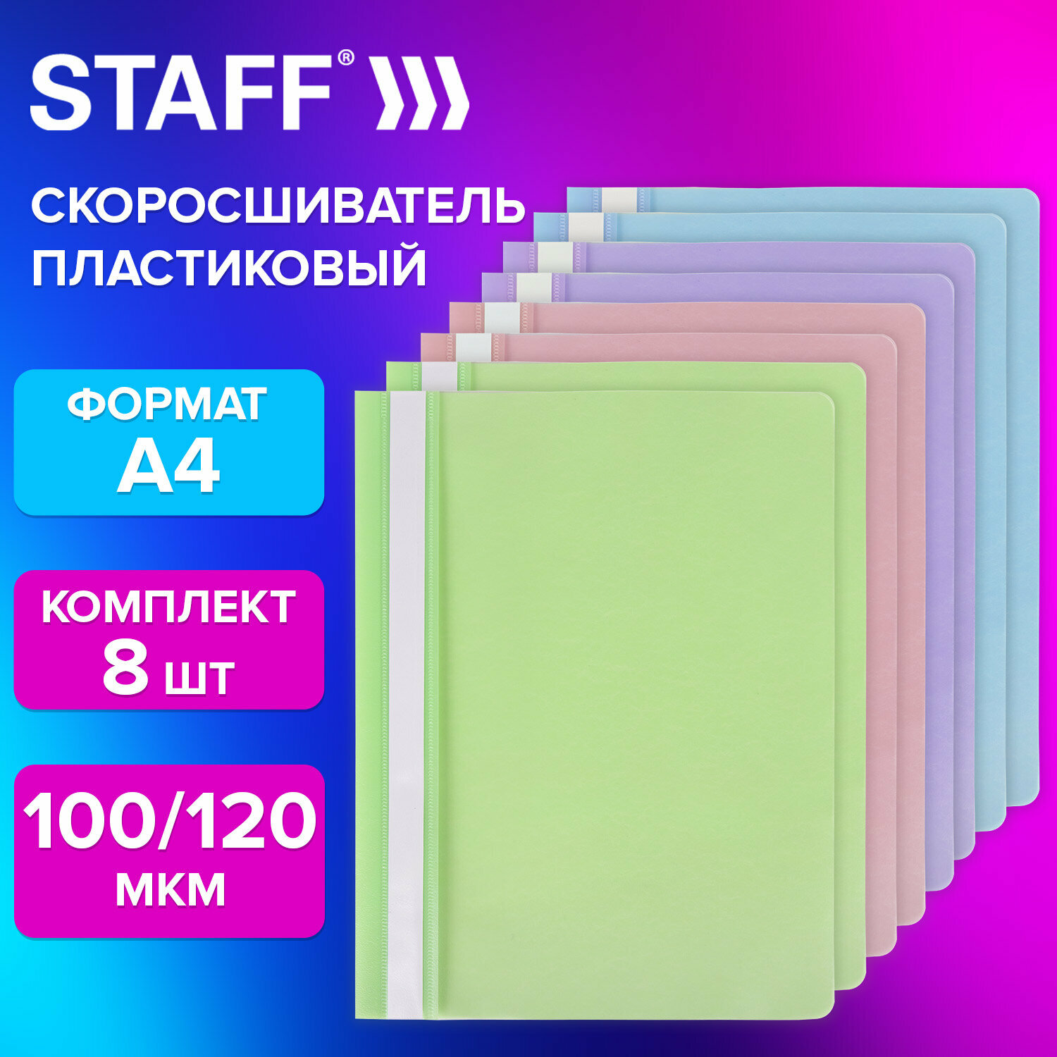 Папка для документов а4 скоросшиватель, комплект 8 штук ассорти, Staff, 271952