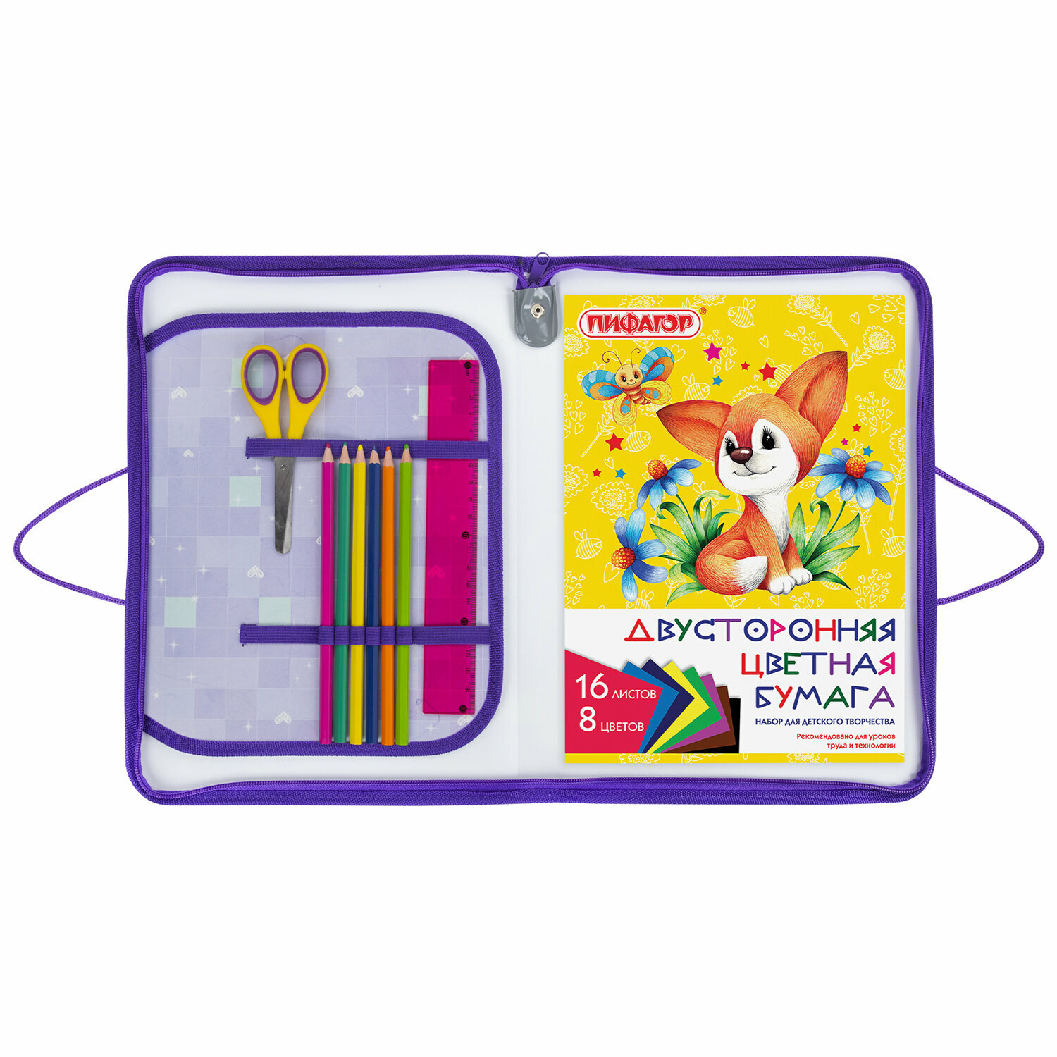 Папка для труда на молнии с ручками пифагор А4, 1 отделение, пластик, органайзер, "Foxes", 270876