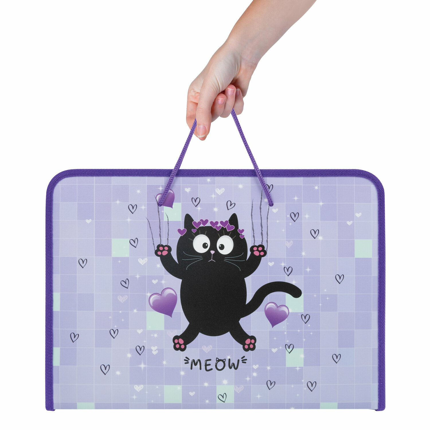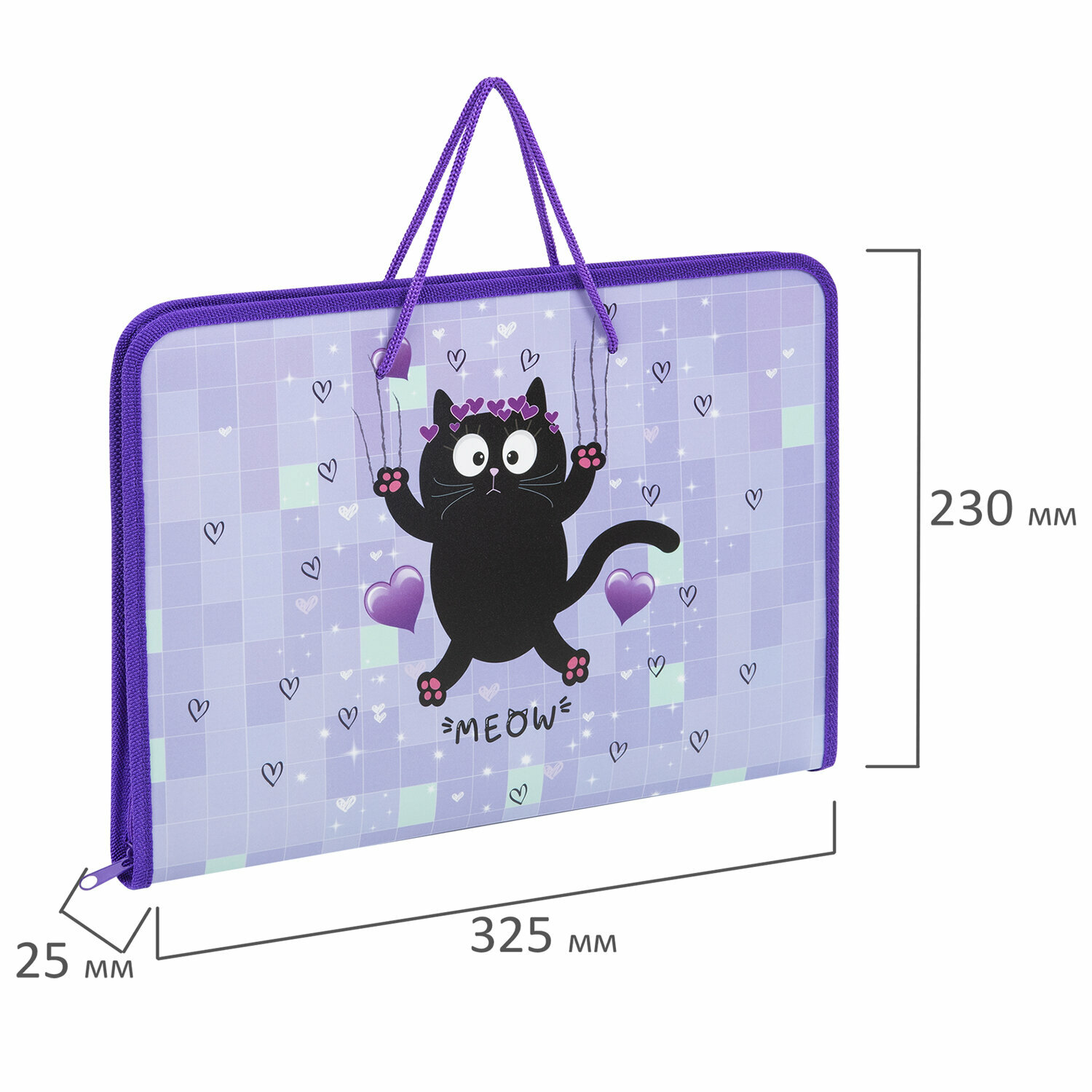 Папка для труда Пифагор на молнии, с ручками, А4, 1 отделение, пластик, органайзер, "Positive kitty"