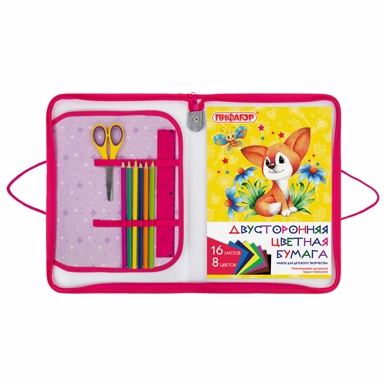 Папка для труда на молнии с ручками пифагор А4, 1 отделение, пластик, органайзер, "Foxes", 270876