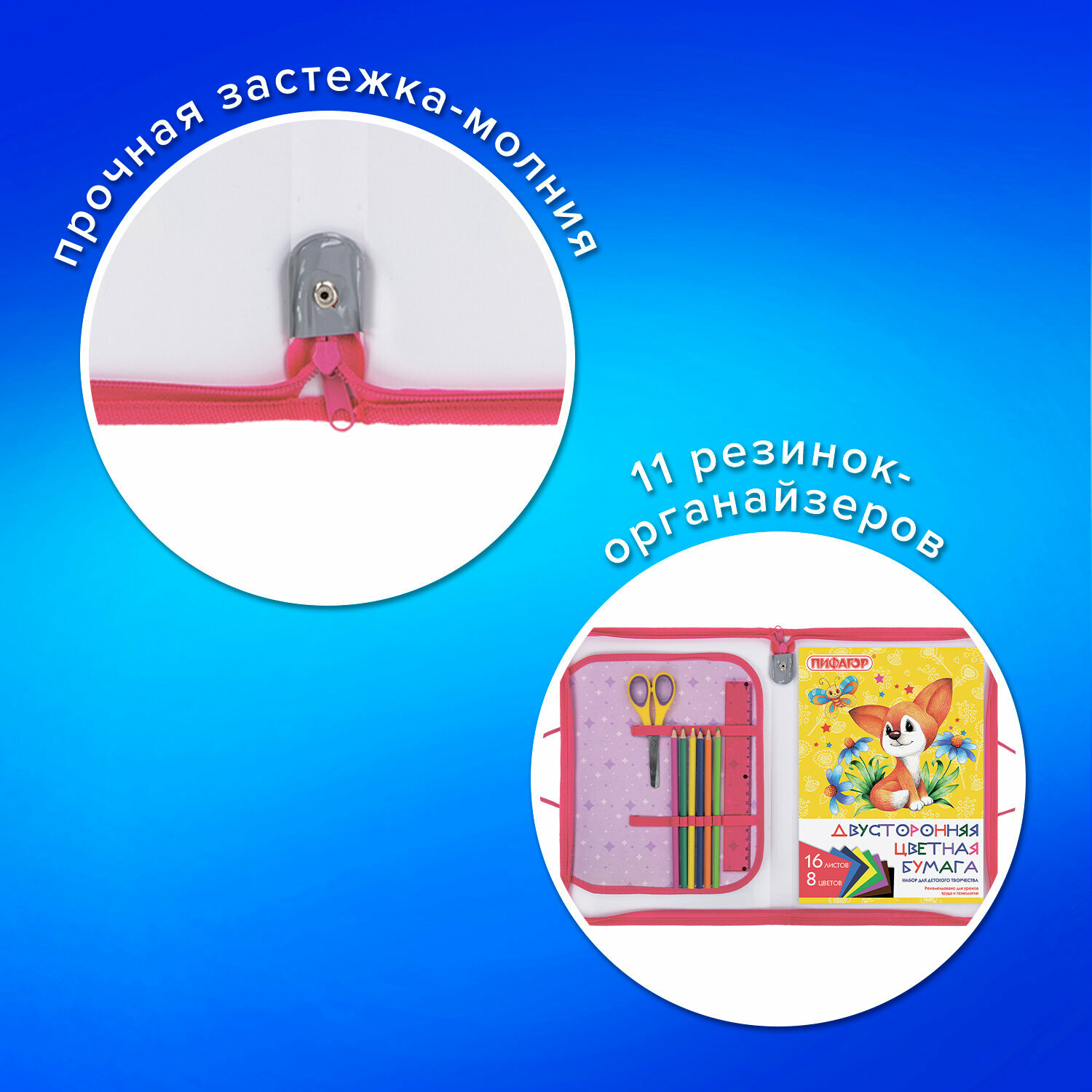Папка для труда Пифагор на молнии с ручками А4, 1 отделение, пластик, откидная планка