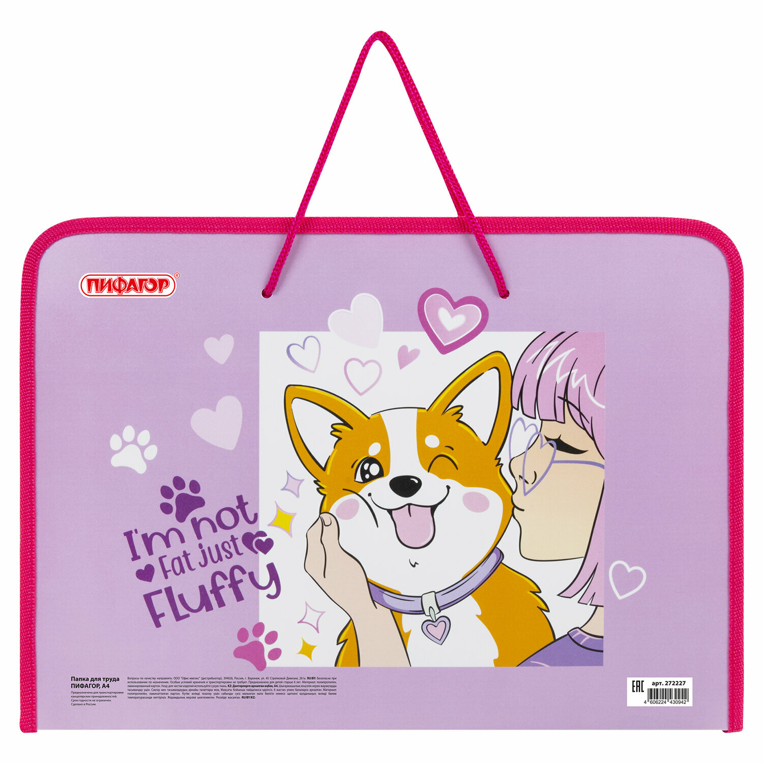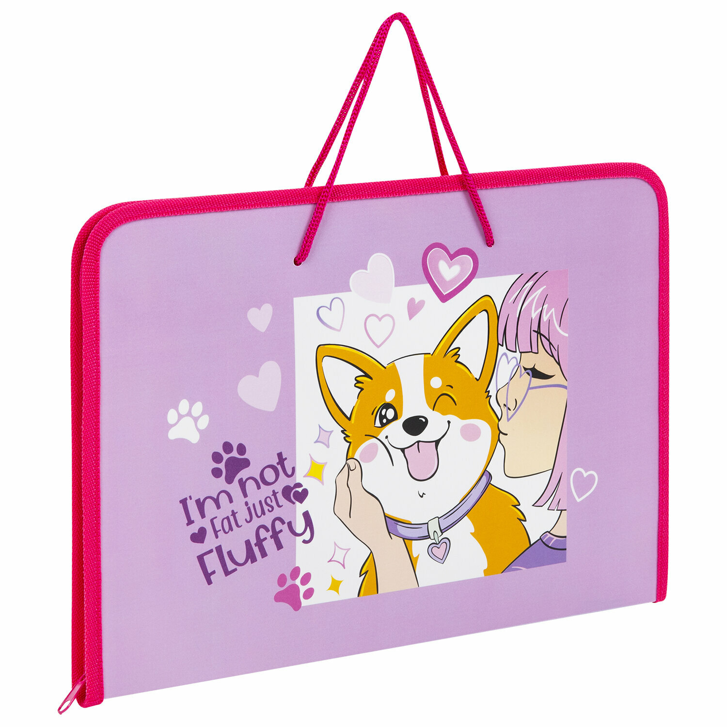 Купить Папка для труда на молнии с ручками Пифагор А4, 1 отделение, пластик, органайзер, Fluffy akita, 272227