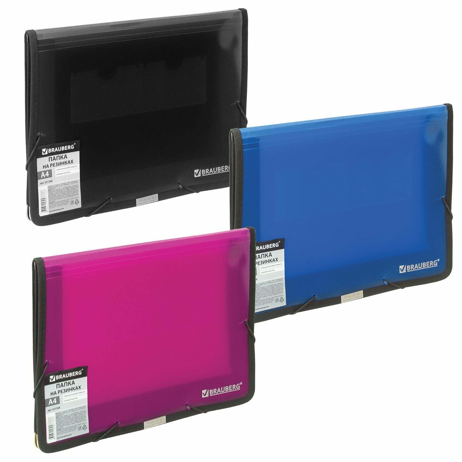 Купить Папка на резинках BRAUBERG, широкая, А4, 330х240 мм, ассорти, до 500 листов, 0,6 мм, 221368