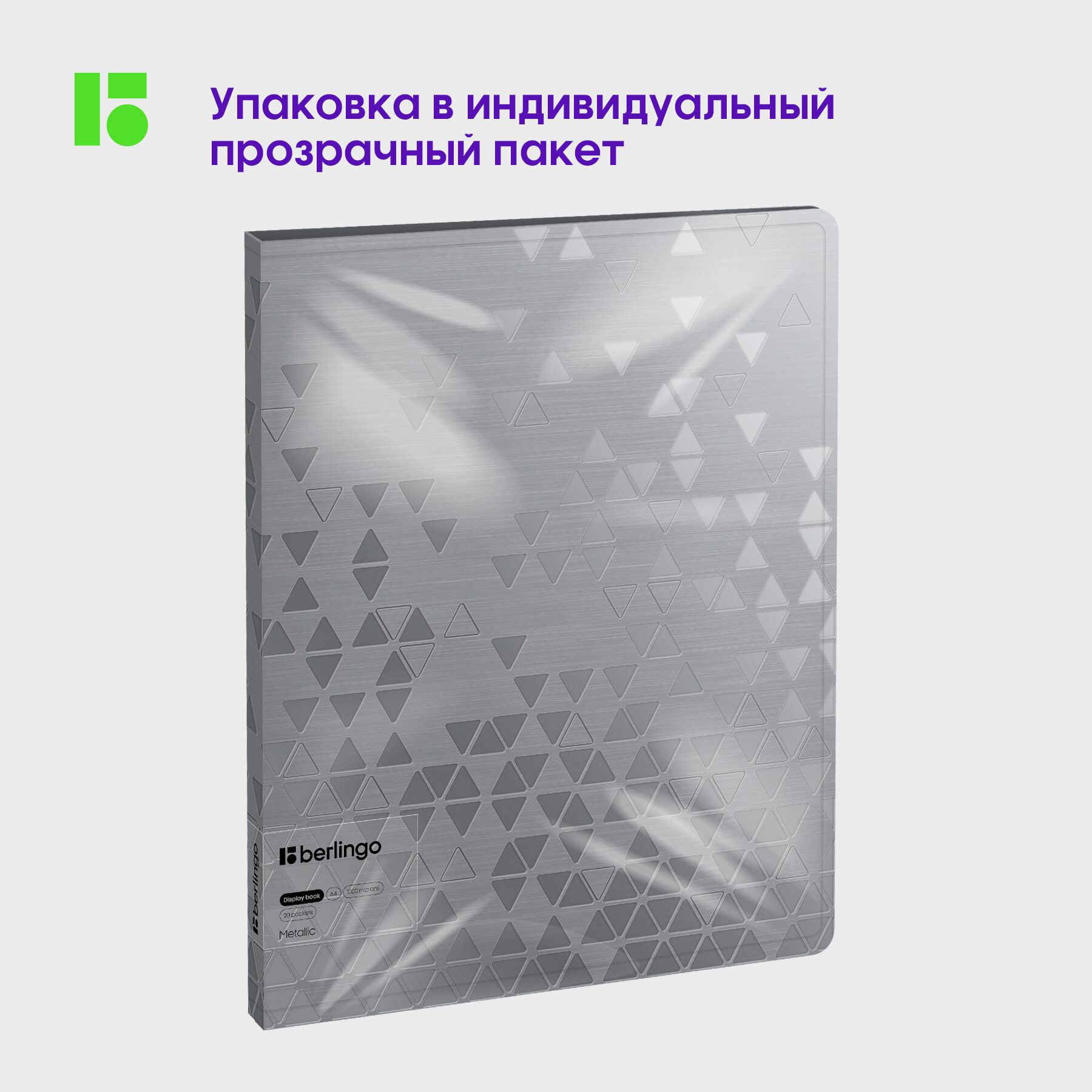 Папка с 20 вкладышами Berlingo "Metallic", 17мм, 1000мкм, серебряный металлик, с внутр. карманом (4 шт)