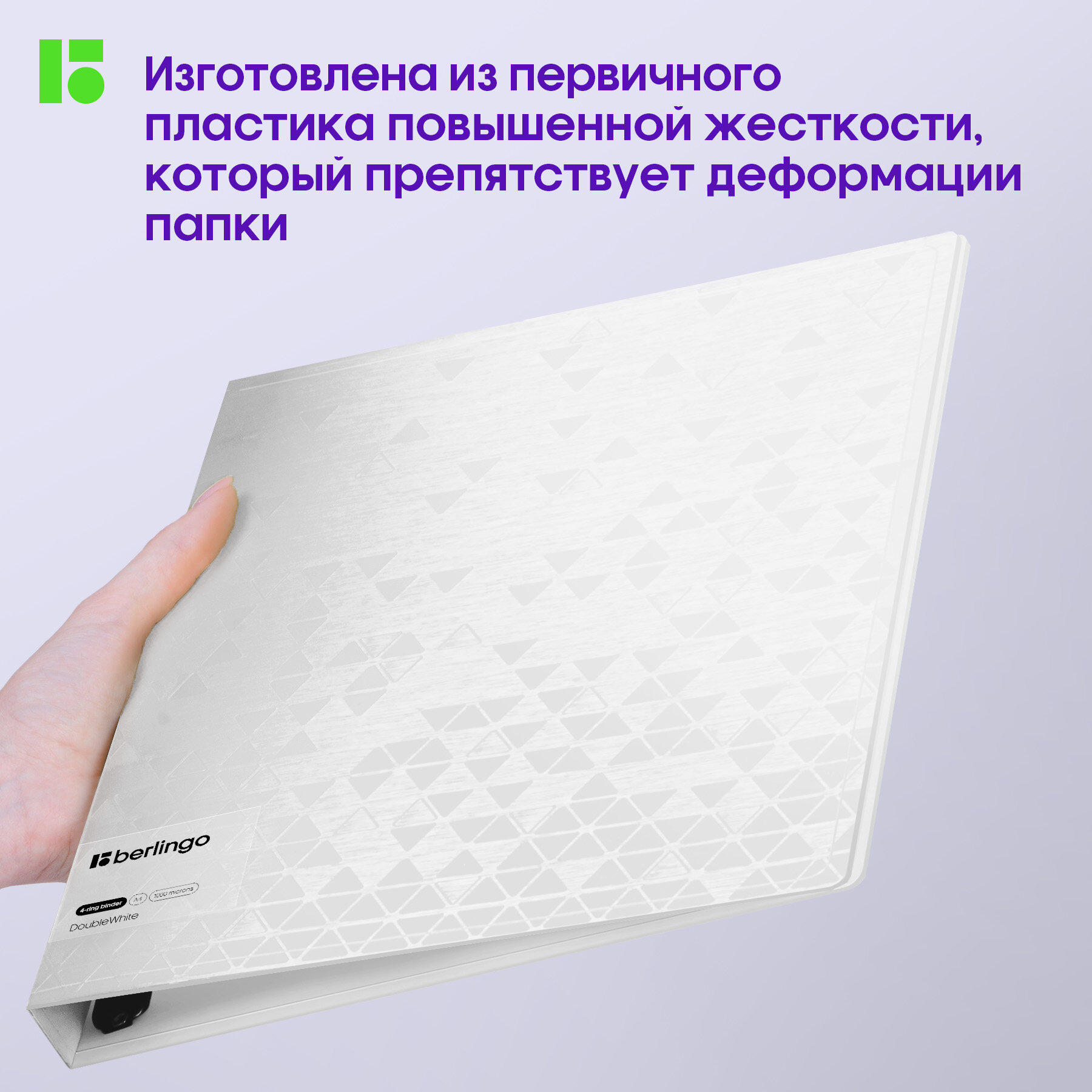 Папка Berlingo "DoubleWhite", 24 мм, 1000 мкм, белая, на 4 D-кольцах, с внутренним карманом (RB4_4D397)