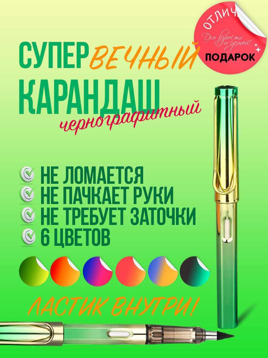 Ниже Вы можете прочитать отзывы на Простой вечный карандаш / бесконечный карандаш чернографитный с ластиком для школы и рисования и скетчинга, ознакомится с подробными характеристиками, посмотреть интересные обзоры и фотографии на Простой вечный карандаш / бесконечный карандаш чернографитный с ластиком для школы и рисования и скетчинга.
