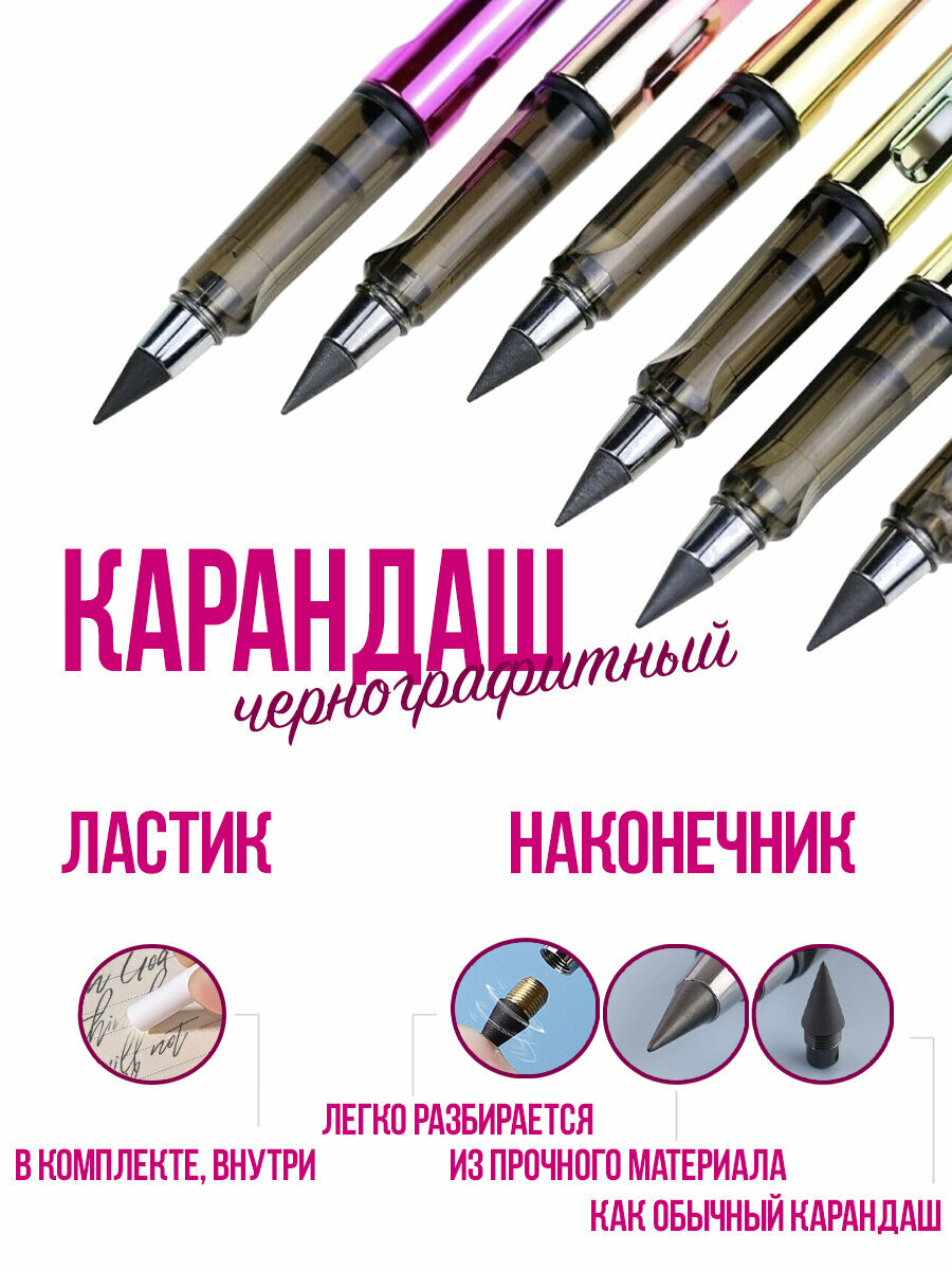 Простой вечный карандаш / бесконечный карандаш чернографитный с ластиком для детей и взрослых