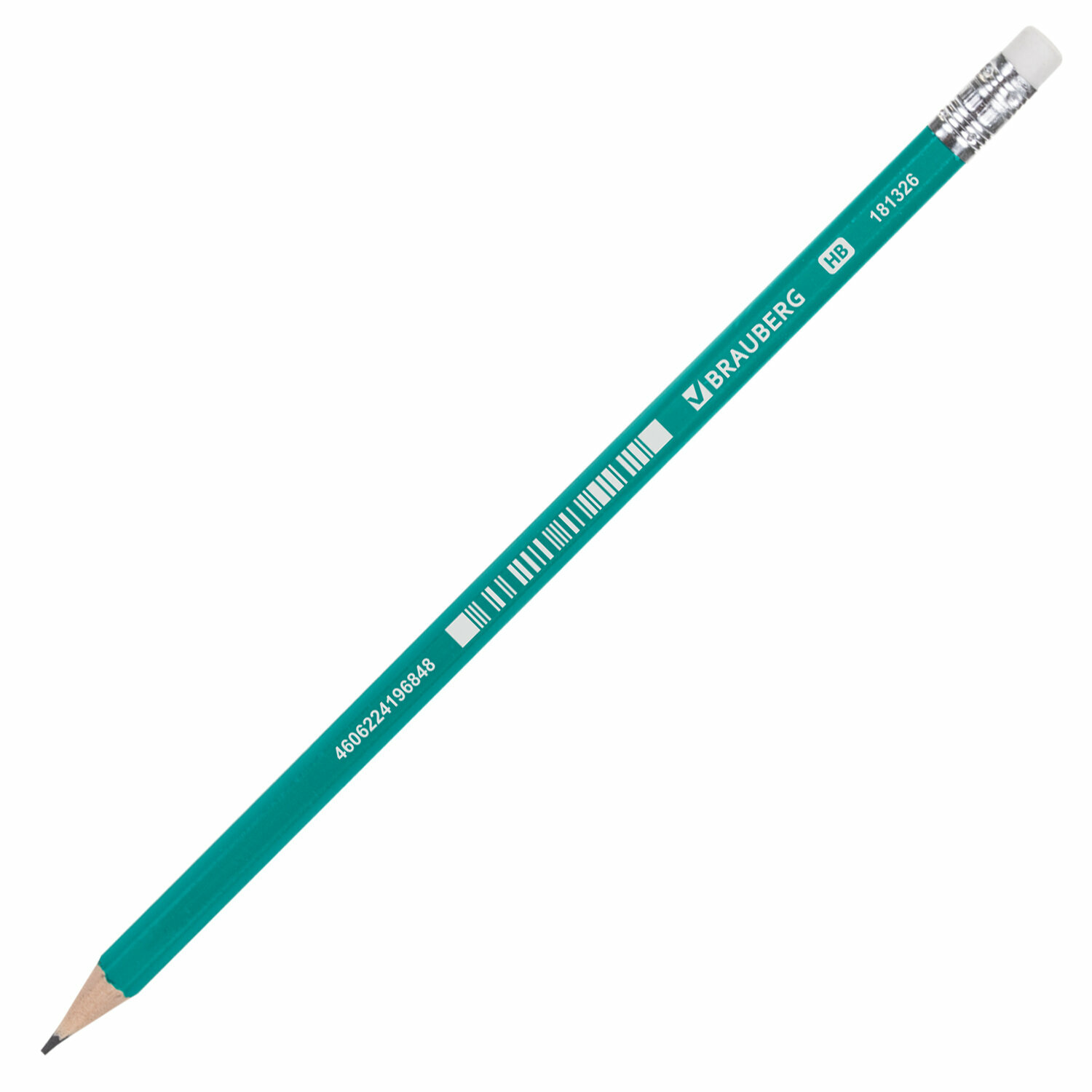 Купить Карандаш чернографитный BRAUBERG, 1 шт., "Grass", НВ, с резинкой, пластиковый, зеленый корпус,181326, - Комплект 34 шт.(компл.)