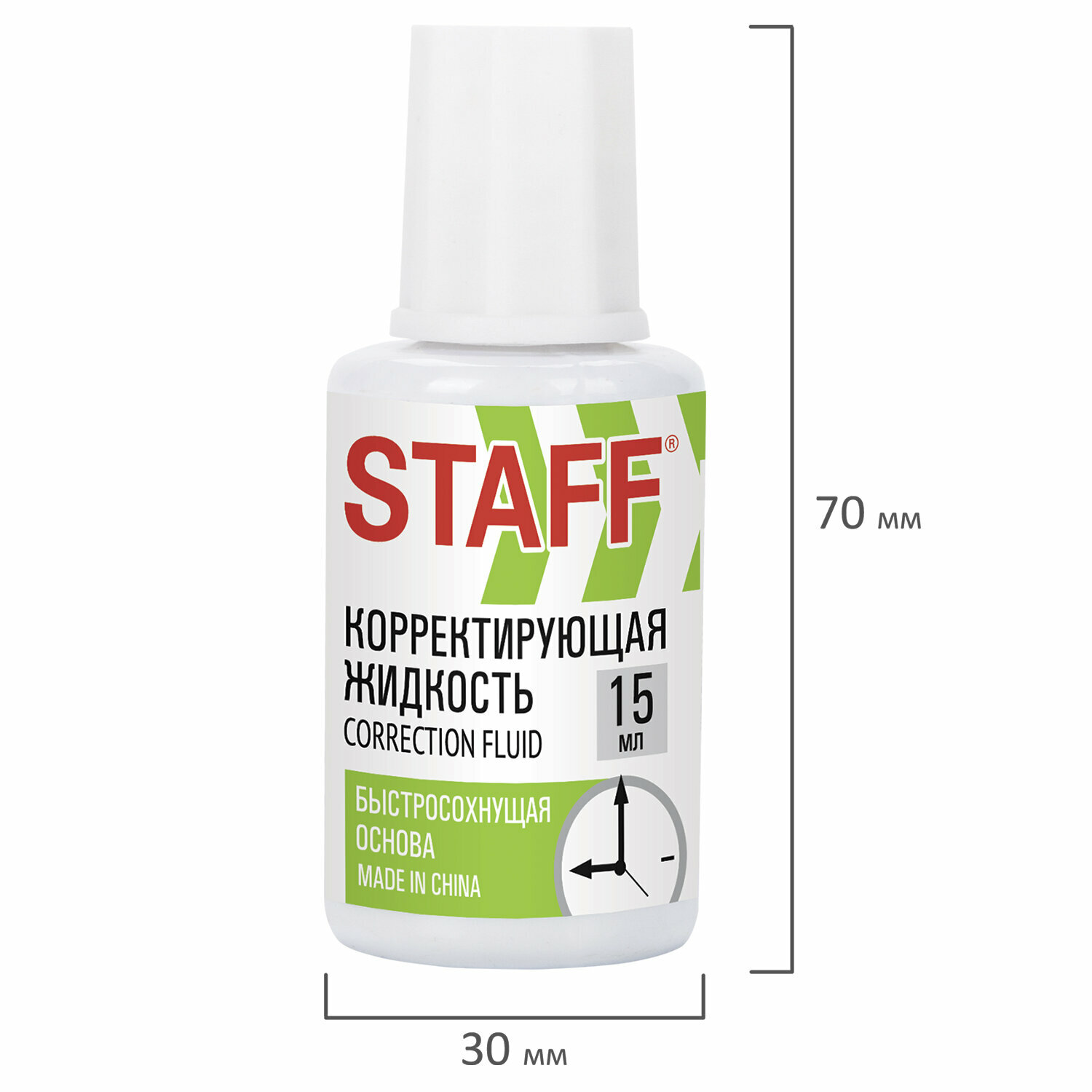Корректирующая жидкость Staff 15 мл, с кисточкой, быстросохнущая (226055) интересное: