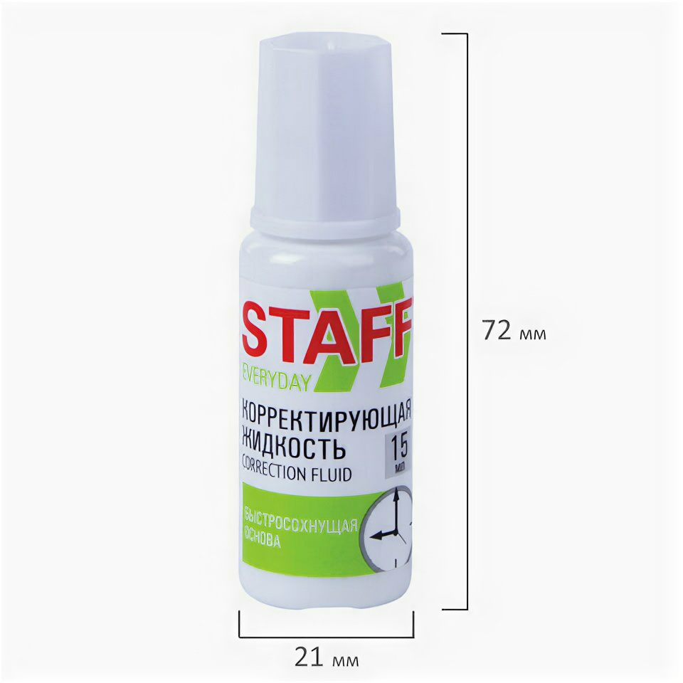 Корректирующая жидкость STAFF "Everyday" быстросохнущая, 15 мл, с кисточкой, 229398, 2 штуки интересное: