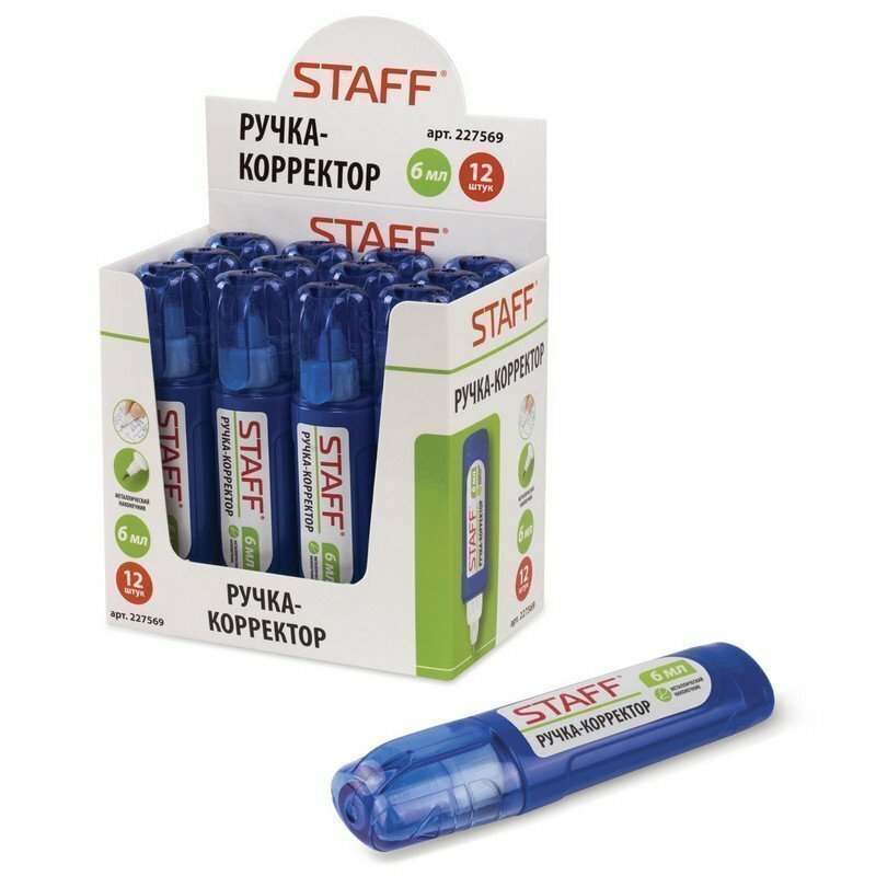 Купить Ручка-корректор STAFF, 6 мл, металлический наконечник, плоский корпус, 227569
