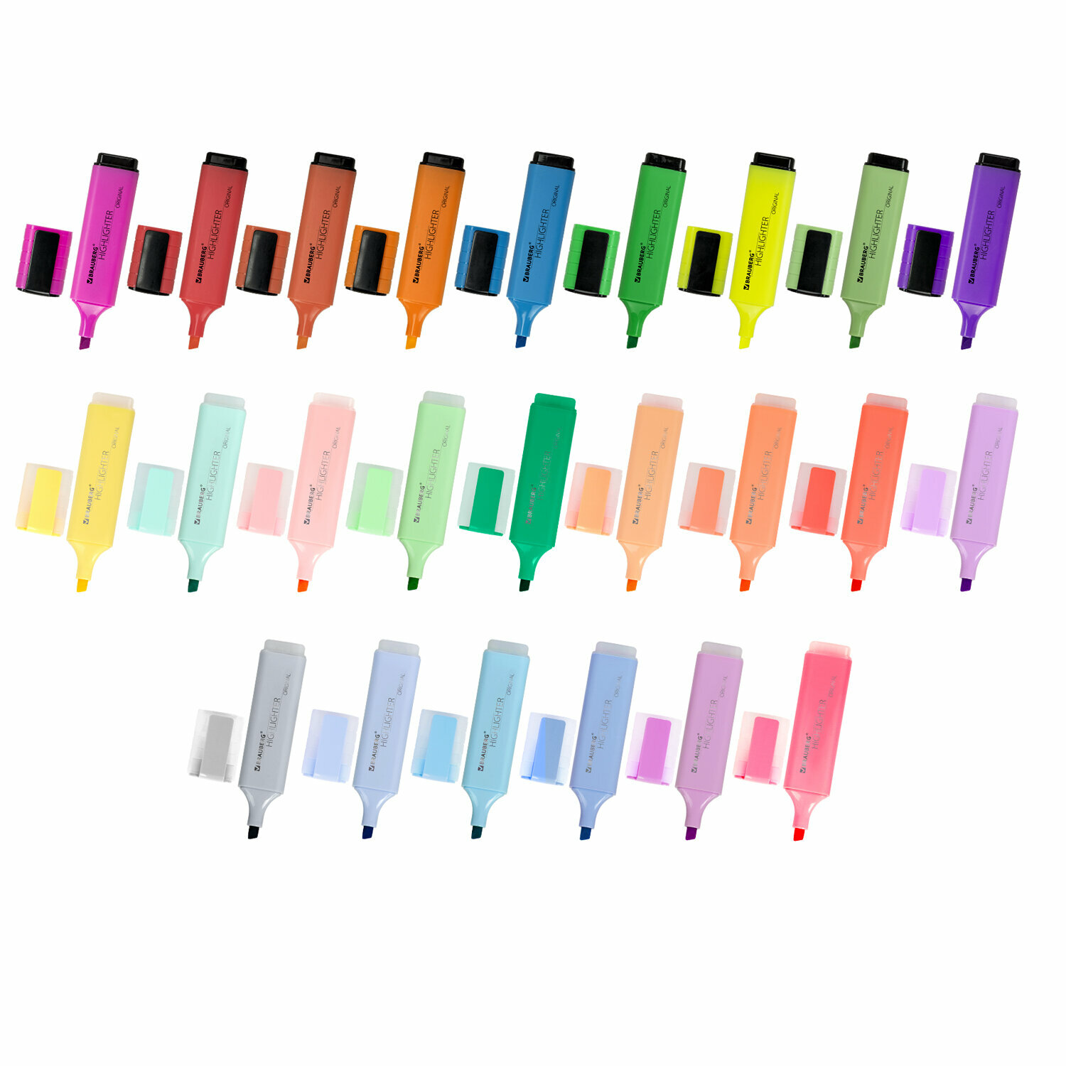 Купить Текстовыделители пастельные и неоновые, набор 24 цвета, маркеры для рисования, скетчинга, выделения текста на подставке, Brauberg Original, 152508