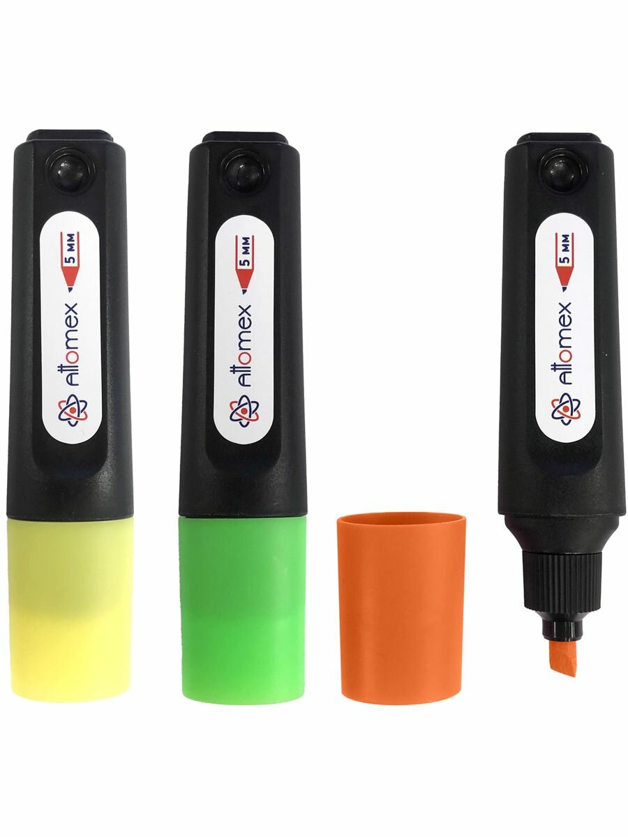 Купить Набор маркеров текстовыделителей 3 цвета: желтый, зеленый, оранжевый) плоский корпус с клипом, скошенный наконечник, ширина линии 1-5 мм