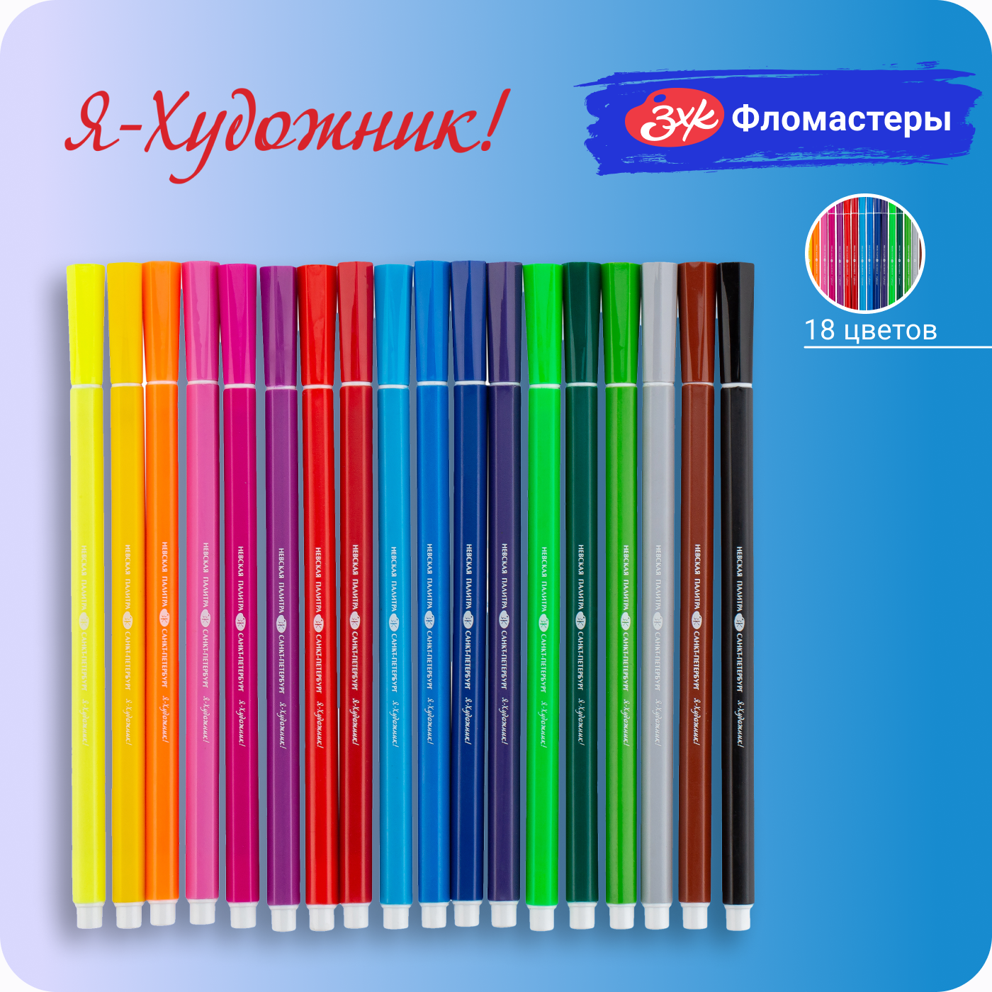 Купить Я-Художник! / Фломастеры на водной основе, 18 цветов в пластиковом пенале, ЗХК Невская палитра