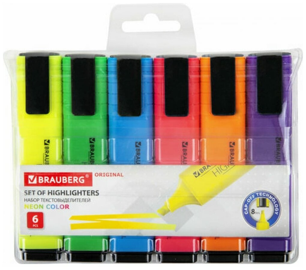 Набор текстовыделителей 6 цветов, BRAUBERG "ORIGINAL NEON", линия 1-5 мм, 152216 интересное: