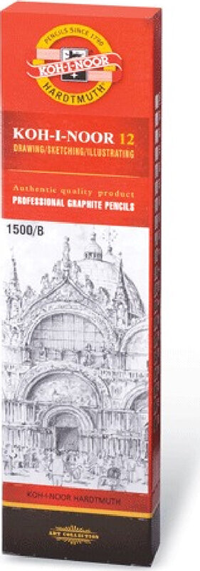 Купить Набор карандашей Карандаш чернографитный KOH-I-NOOR 1500, B, без резинки, корпус желтый, заточенный, 150000B01170RU 4 штуки
