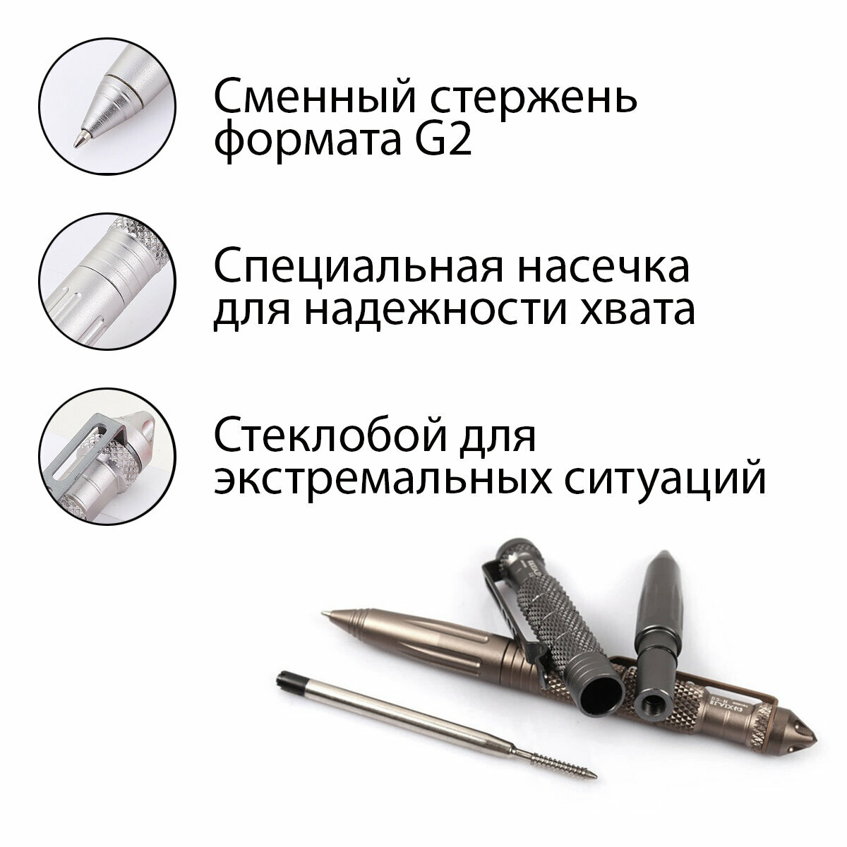 Ручка шариковая тактическая мультитул, сменный стержень 0,7мм, черные чернила, цвет темно-серый интересное: