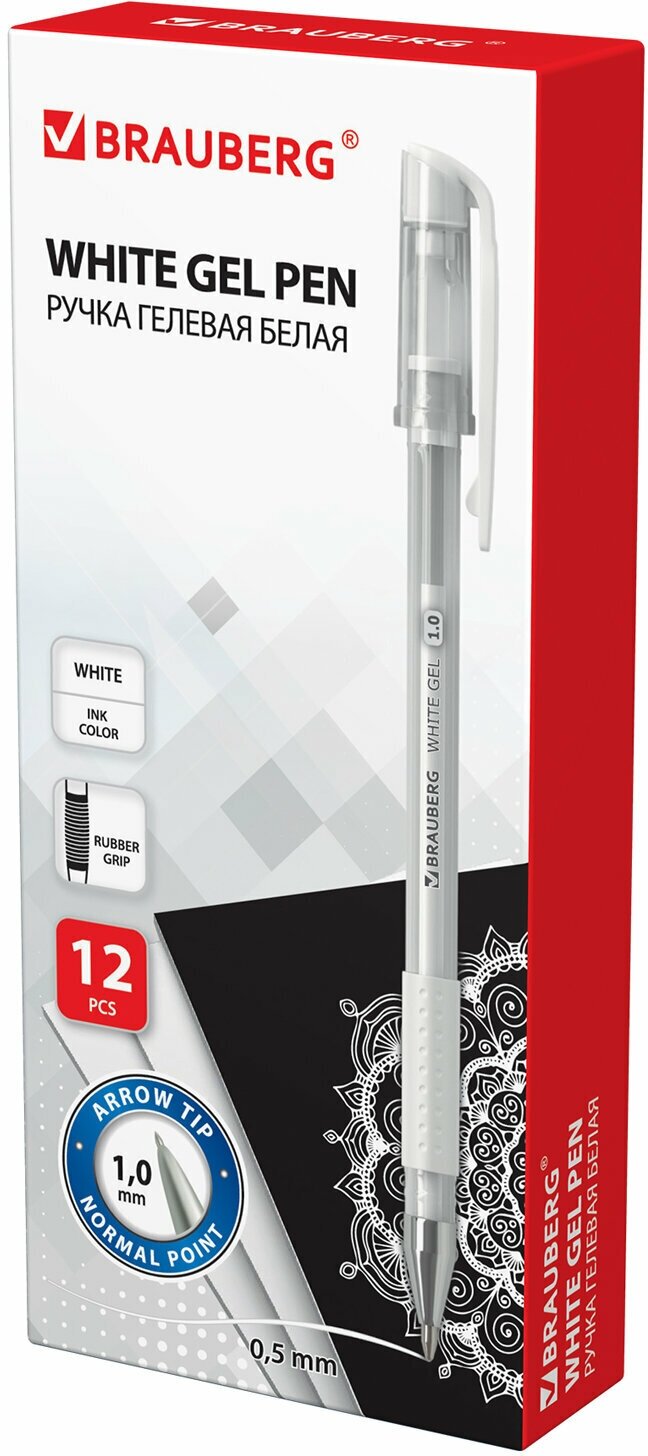 Купить Ручка гелевая с грипом BRAUBERG White, комплект 12 штук, БЕЛАЯ, узел 1мм, линия 0,5мм, 880214
