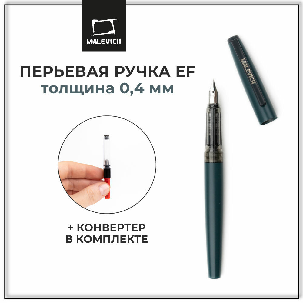 Ручка перьевая Малевичъ с конвертером, перо EF 0,4 мм, цвет: бирюзовый