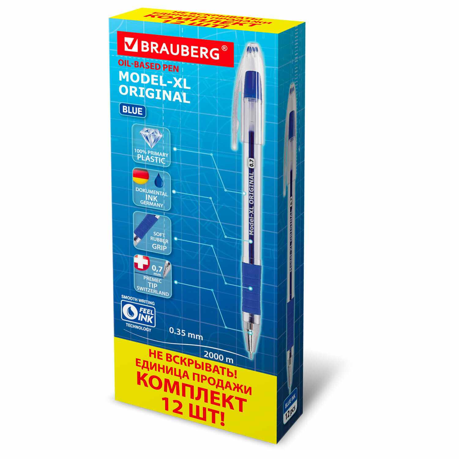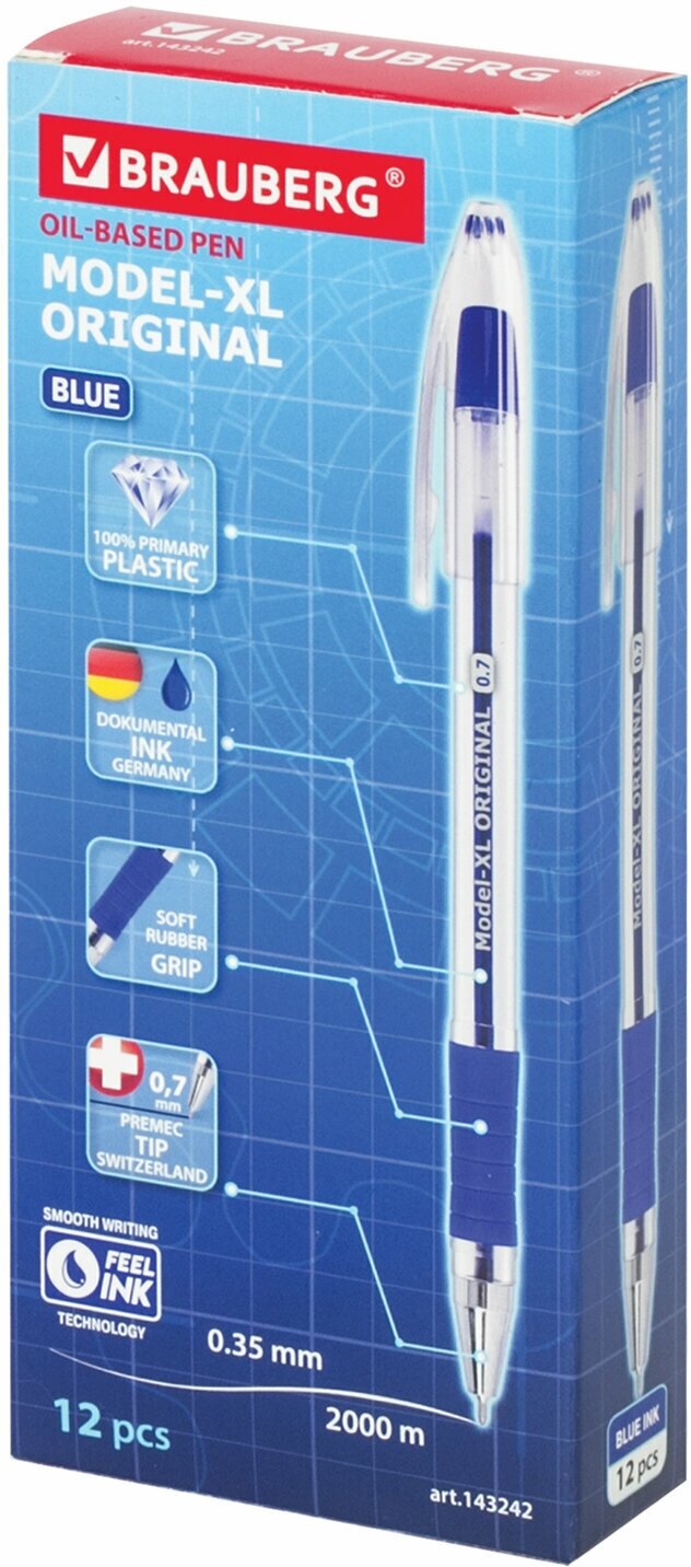 Ручка шариковая масляная с грипом BRAUBERG Model-XL ORIGINAL, комплект 12 штук, синяя, 0,7мм, 880010 интересное: