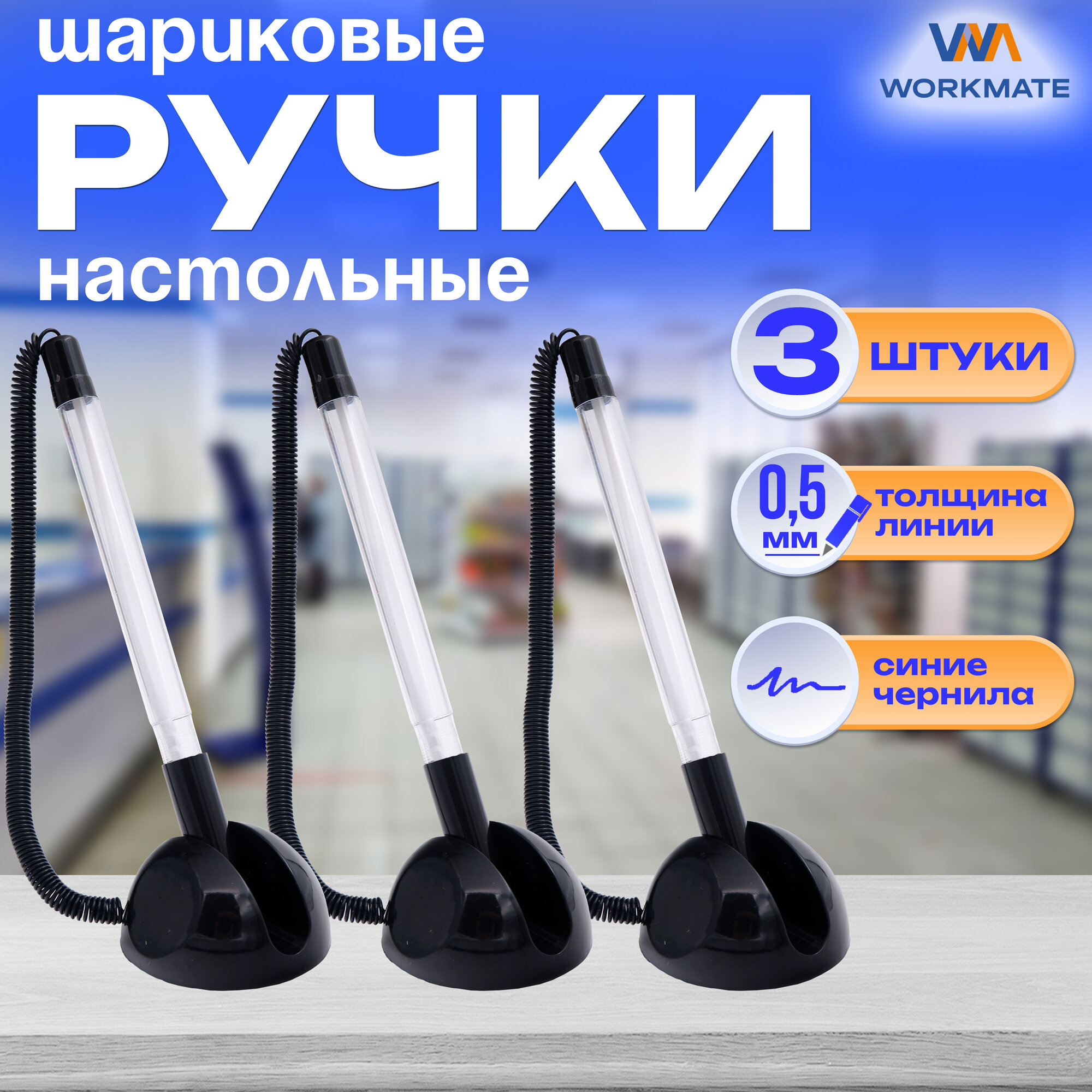 СохранитьРучка шариковая настольная черный корпус, синие чернила, 3 шт в наборе, на липучке, регулируемый угол наклона (15-1364) интересное: