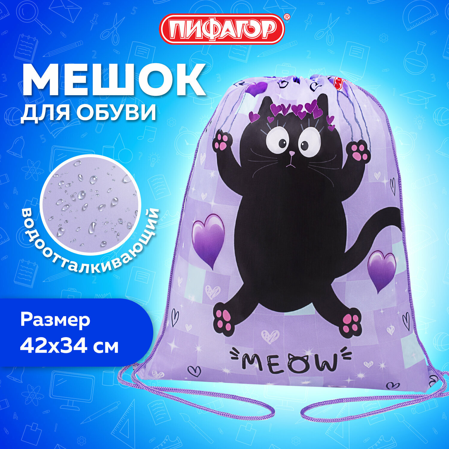 Мешок для обуви пифагор, 1 отделение, 40х32 см, Falling cat, 272383